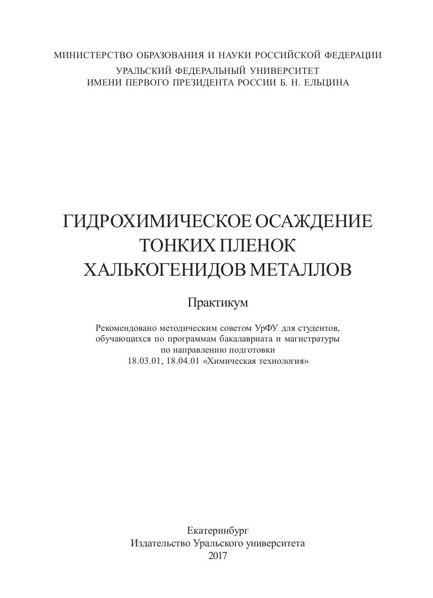 Гидрохимическое осаждение тонких пленок халькогенидов металлов: практикум