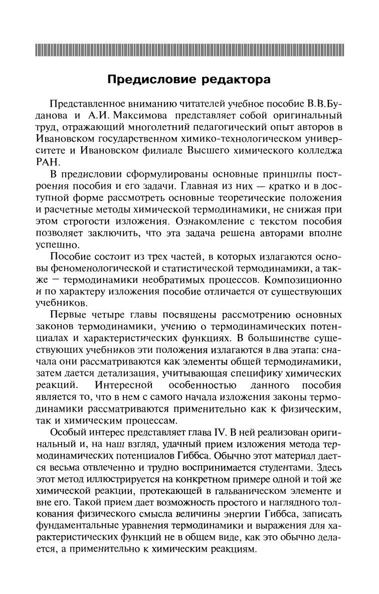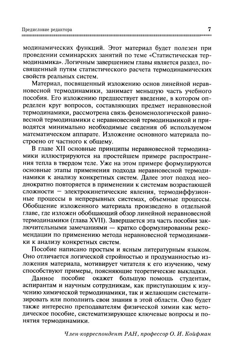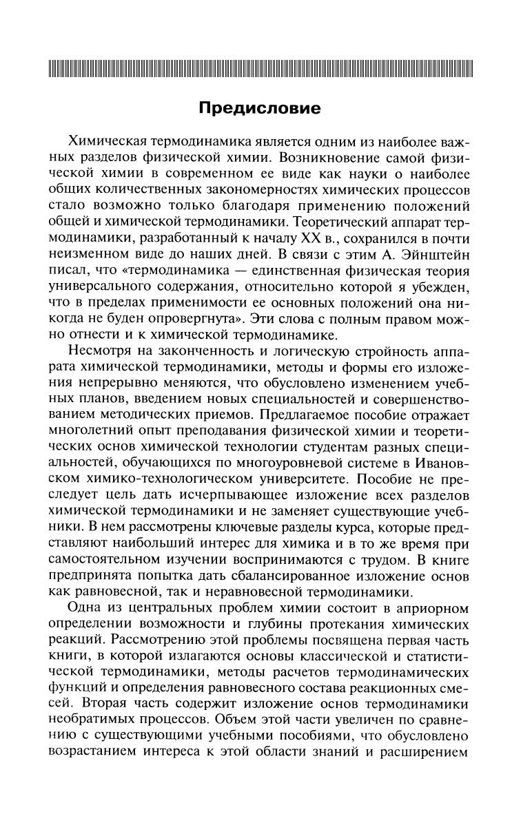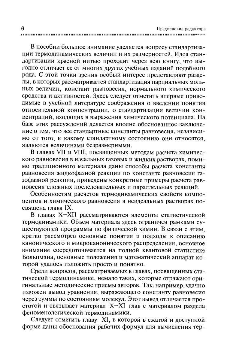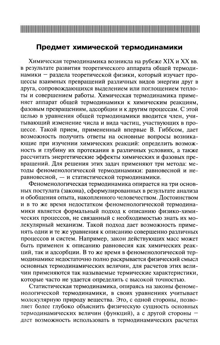 В краткой и доступной форме рассмотрены основные положения феноменологической (равновесной и неравновесной) и статистической термодинамики, их применение к расчетам химических реакций и сопутствующих физических процессов. Большое внимание уделено проблемам недостаточно освещенным в литературе: стандартизации и размерностям термодинамических величин, существенным деталям выводов основополагающих уравнений и их применению в неидеальных системах. Написано в соответствии с Государственным образовательным стандартом по направлениям «Химия», «Химическая технология и биотехнология», предназначено студентам, магистрантам, аспирантам, а также научным сотрудникам и преподавателям для самостоятельной работы над курсом.