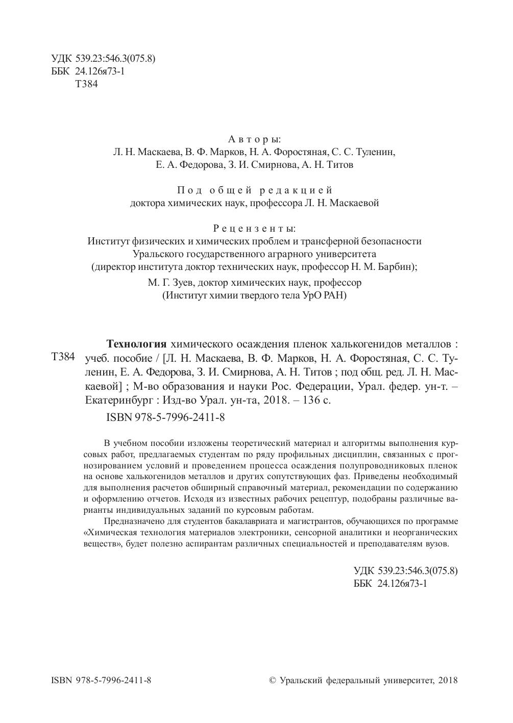 Авторы: Маскаева Л. Н., Марков В. Ф.