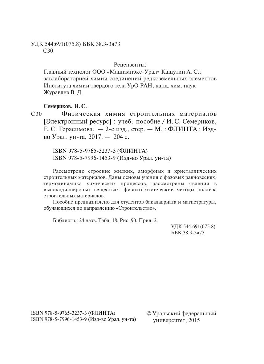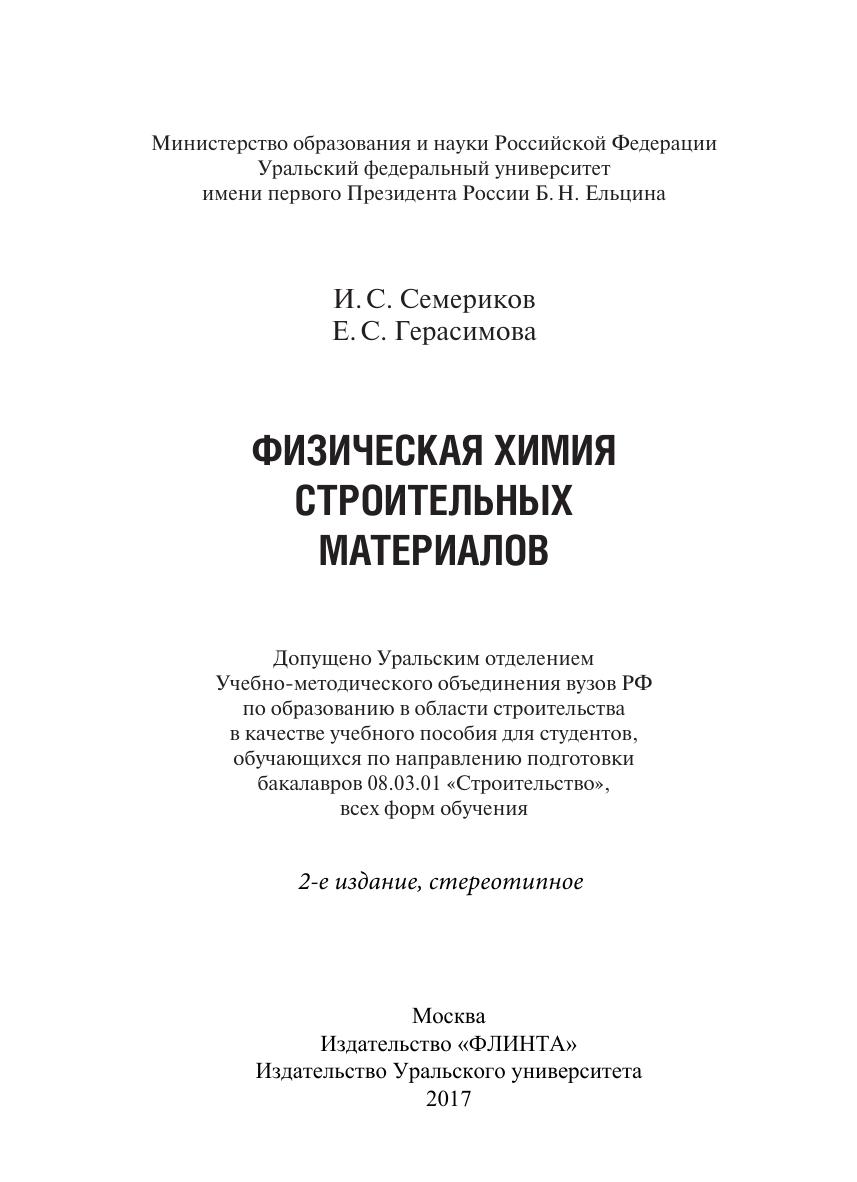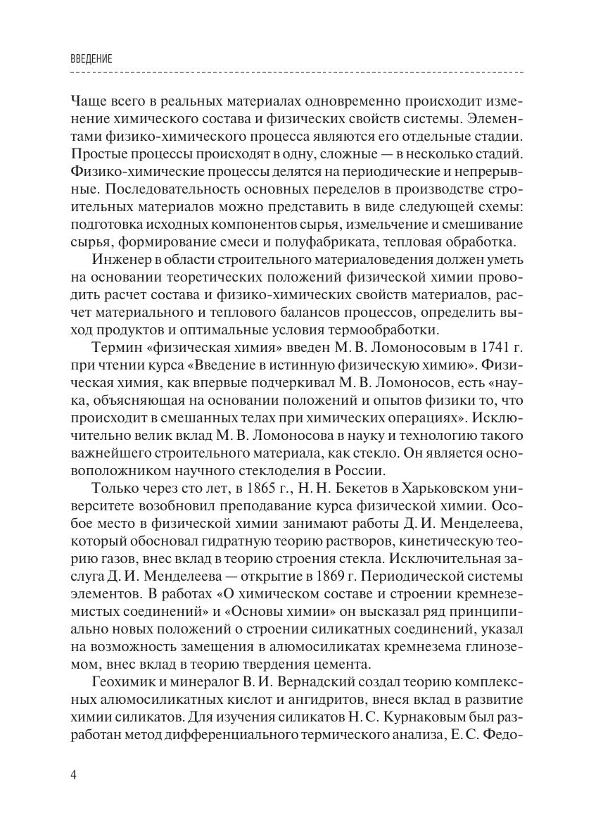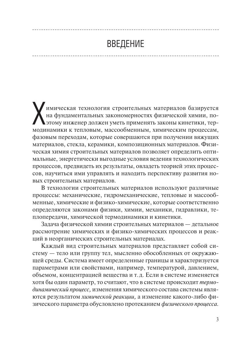 Рассмотрено строение жидких, аморфных и кристаллических строительных материалов. Даны основы учения о фазовых равновесиях, термодинамика химических процессов, рассмотрены явления в высокодисперсных веществах, физико-химические методы анализа строительных материалов. Пособие предназначено для студентов бакалавриата и магистратуры, обучающихся по направлению «Строительство».