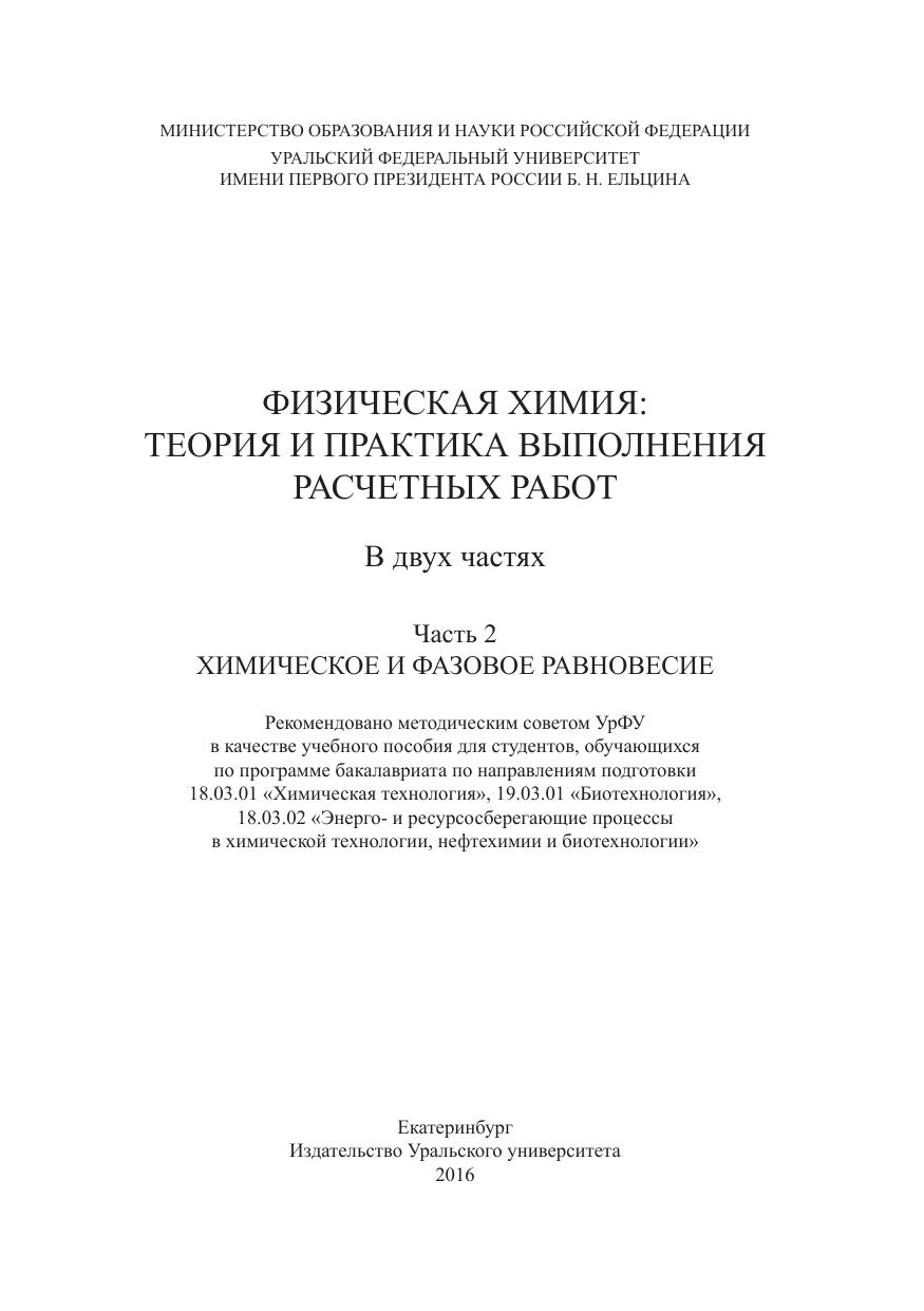 Физическая химия: теория и практика выполнения расчетных работ : в 2 ч. Ч. 2 : Химическое и фазовое равновесие