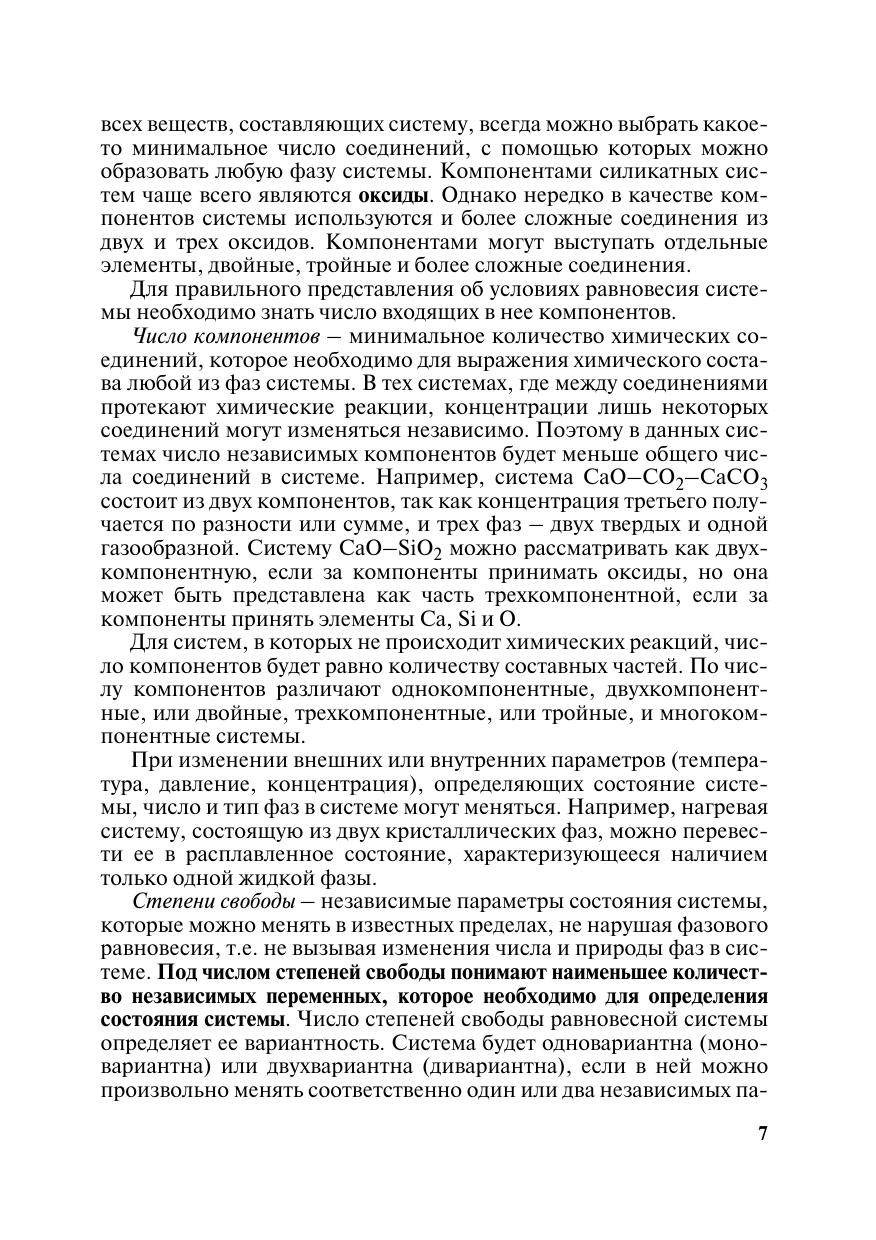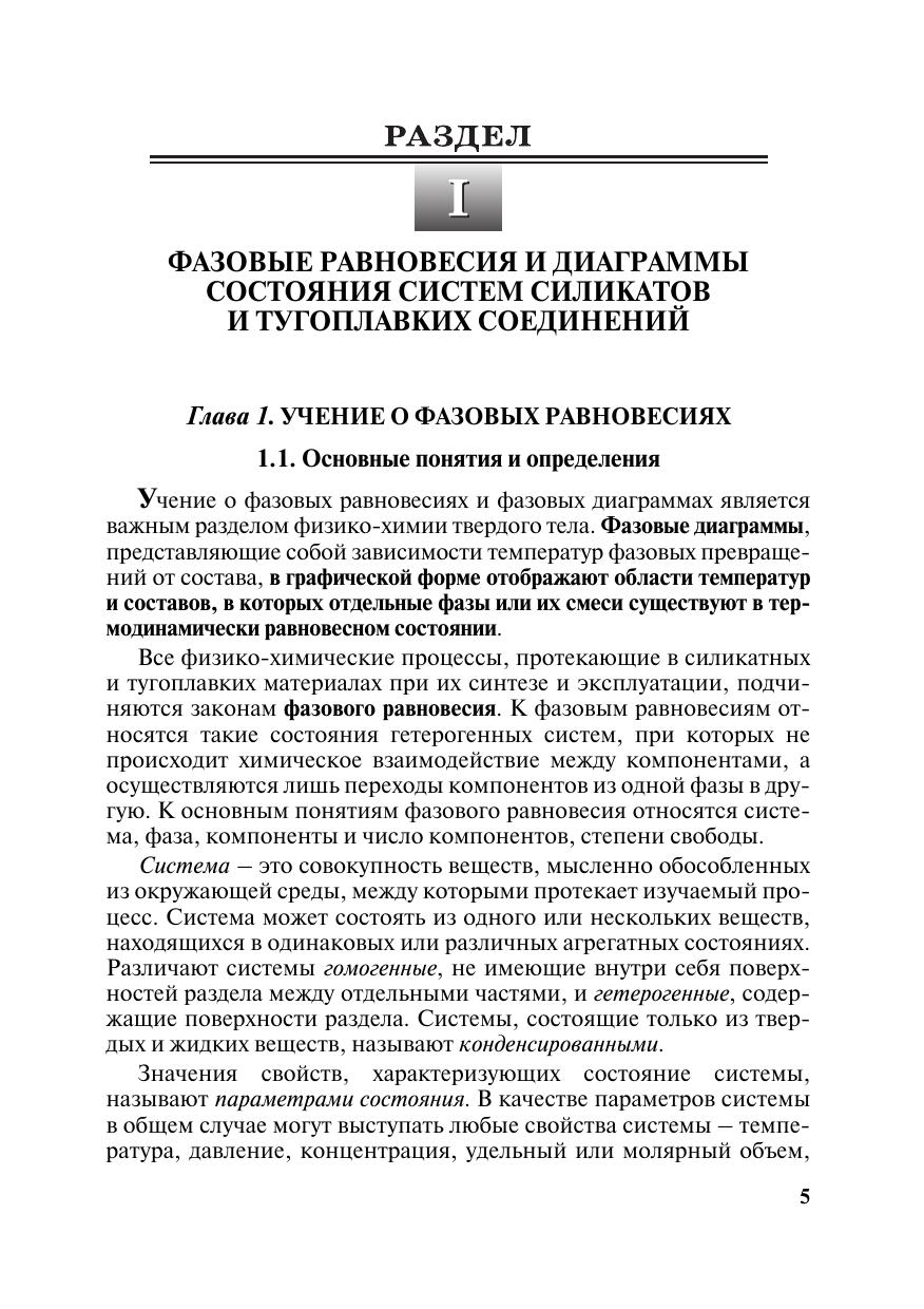 Рассматриваются основы фазовых равновесий в системах на основе силикатов и тугоплавких неметаллических соединений. Представлен перечень диаграмм состояния с учетом возрастающих масштабов производства и разнообразия силикатных материалов. Приводятся современные диаграммы состояния для синтеза материалов по высокодисперсному состоянию силикатов, по механизму и последовательности реакций в твердом состоянии. Отдельный раздел посвящен наиболее важным методам изучения фазовых превращений, фазового состояния и структуры материалов на основе силикатных систем.