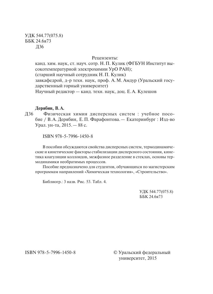 В пособии обсуждаются свойства дисперсных систем, термодинамические и кинетические факторы стабилизации дисперсного состояния, кинетика коагуляции коллоидов, межфазное разделение в стеклах, основы термодинамики необратимых процессов. Пособие предназначено для студентов, обучающихся по магистерским программам направлений «Химическая технология», «Строительство».