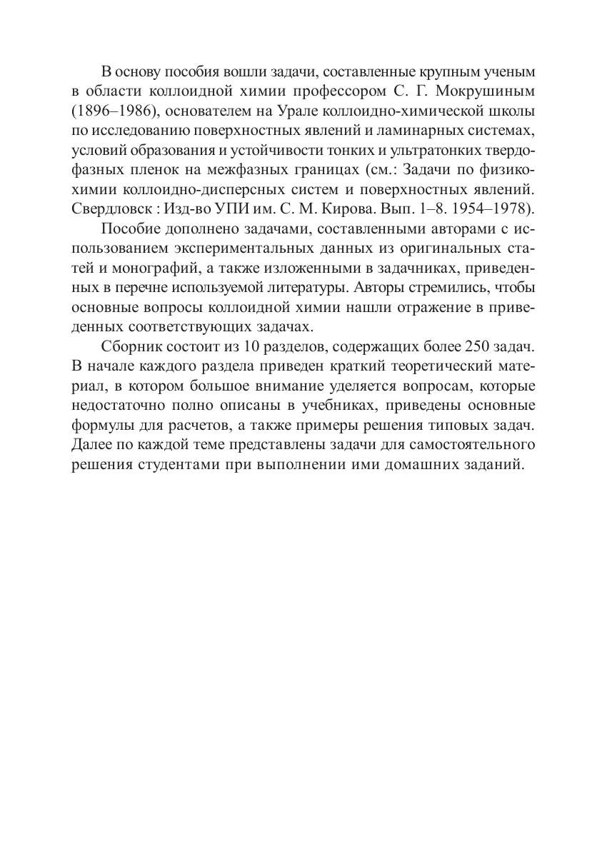 В пособии изложены основные разделы коллоидной химии: количественные характеристики, образование, строение лиофильных и лиофобных дисперсных систем, их молекулярно-кинетические и оптические свойства, седиментационный анализ, адсорбция, смачивание, капиллярные и электрокинетические явления, кинетика коагуляции. Каждый раздел содержит основные теоретические положения, примеры решения типовых задач и задачи для самостоятельной проработки. Пособие предназначено для студентов вузов.