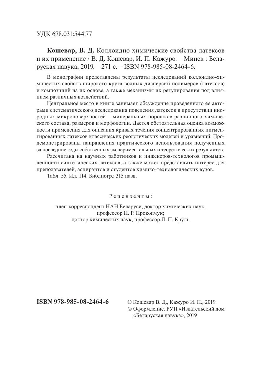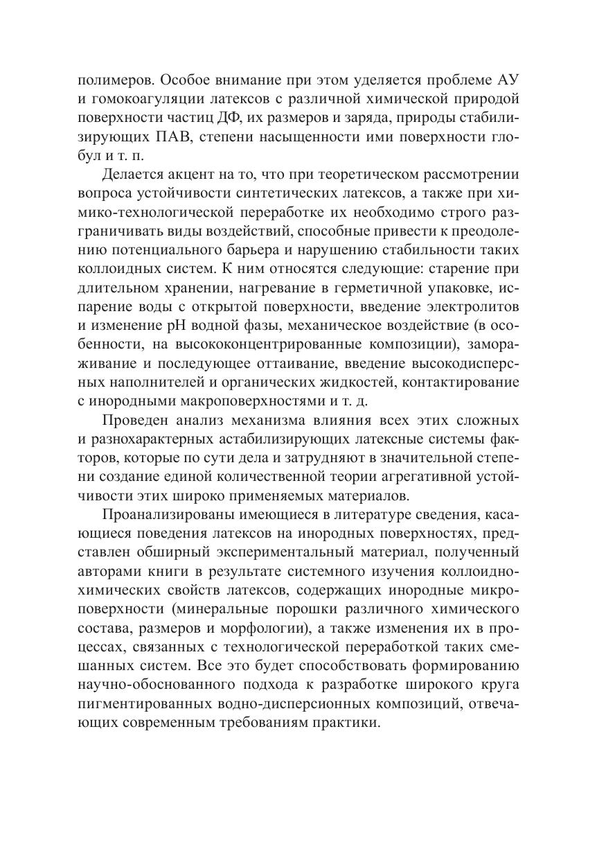 В монографии представлены результаты исследований коллоидно-химических свойств широкого круга водных дисперсий полимеров (латексов) и композиций на их основе, а также механизмы их регулирования под влиянием различных воздействий. Центральное место в книге занимает обсуждение проведенного ее авторами систематического исследования поведения латексов в присутствии инородных микроповерхностей – минеральных порошков различного химического состава, размеров и морфологии. Дается обстоятельная оценка возможности применения для описания кривых течения концентрированных пигментированных латексов классических реологических моделей и уравнений. Продемонстрированы направления практического использования полученных за последние годы собственных экспериментальных и теоретических результатов. Рассчитана на научных работников и инженеров-технологов промышленности синтетических латексов, а также может представлять интерес для преподавателей, аспирантов и студентов химико-технологических вузов.