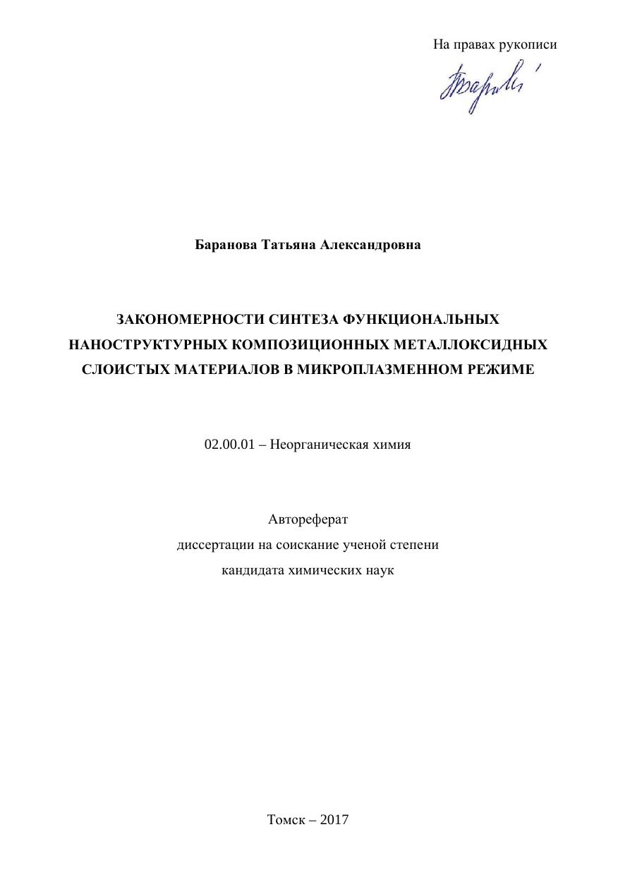 Закономерности синтеза функциональных наноструктурных композиционных металлоксидных слоистых материалов в микроплазменном режиме