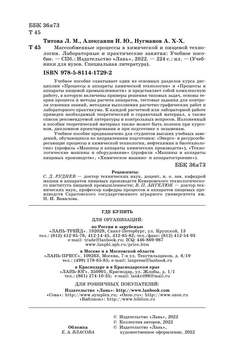 Пособие представляет собой комплексную работу, в которую включены примеры решения типовых задач, основы теории процесса и методы расчета аппаратов, тестовые задания для контроля усвоения знаний, методики выполнения расчетно-графических работ и лабораторного практикума. К каждой расчетной или лабораторной работе приведен необходимый теоретический и справочный материал, а также список рекомендуемой литературы и контрольных вопросов. Изложенный в пособии теоретический материал также может быть полезен при курсовом, дипломном проектировании и при подготовке к экзаменам. Учебное пособие предназначено для студентов направлений подготовки бакалавриата «Энерго- и ресурсосберегающие процессы в химической технологии, нефтехимии и биотехнологии» (профиль «Машины и аппараты химических производств») и направления подготовки бакалавриата «Технологические машины и оборудование» (профили «Машины и аппараты пищевых производств», «Химическое машино- и аппаратостроение») и охватывает один из основных разделов курса дисциплин «Процессы и аппараты химической технологии» и «Процессы и аппараты пищевой промышленности».