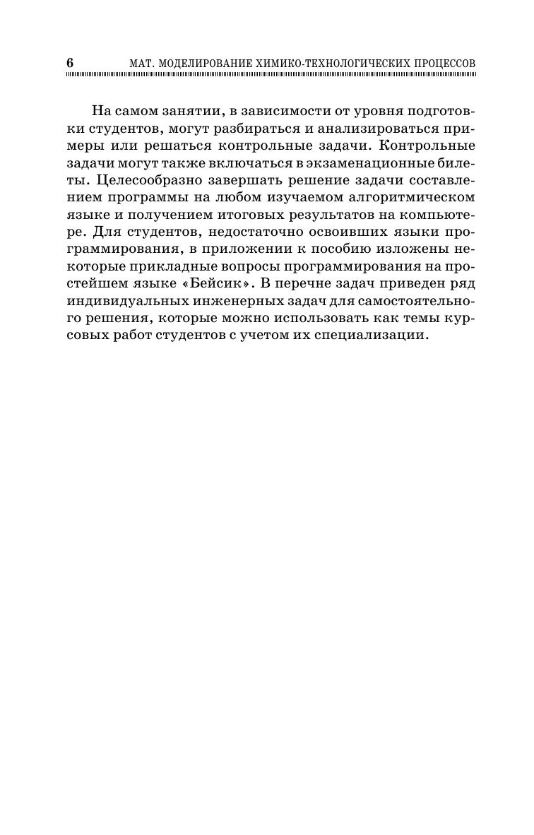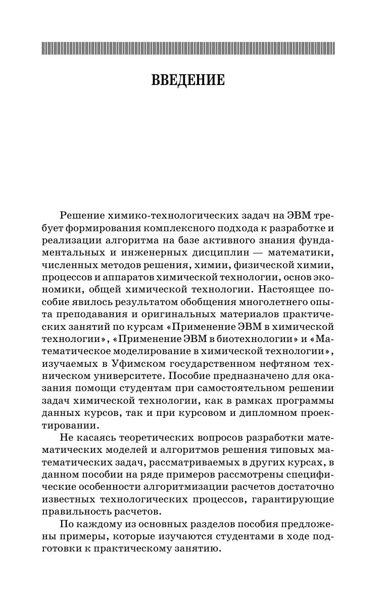 В учебное пособие включено более 30 примеров решения разнообразных задач химической технологии по моделированию кинетики химических реакций, компьютерному расчету и оптимизации работы технологической аппаратуры (реакторы, массообменные аппараты, теплообменники, аппараты для очистки сточных вод и отходящих газов), обработке экспериментальных данных в ходе исследовательских работ, принципам расчета сложных химико-технологических схем и оптимизации технологических процессов. В качестве приложения приведены основные элементы алгоритмизации и программирования, необходимые для самостоятельного решения инженерных задач на ЭВМ. Для студентов, обучающихся по направлениям подготовки: «Энерго- и ресурсосберегающие процессы в химической технологии, нефтехимии и биотехнологии», «Химическая технология», «Биотехнология». Пособие может быть использовано студентами при курсовом и дипломном проектировании, а также будет полезным аспирантам и научным сотрудникам в научно-исследовательской работе.