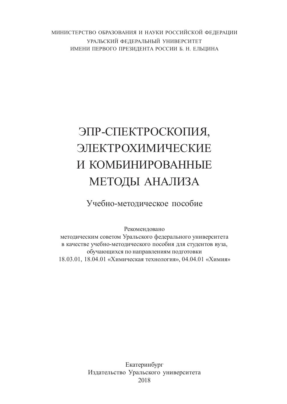 В учебно-методическом пособии приводятся теоретические основы электрохимических методов анализа (хроноамперометрия, хронопотенциометрия, вольтамперометрия, кулонометрия, импедансная спектроскопия) и CW-ЭПР-спектроскопии, а также методы анализа и моделирования ЭПР-спектра. Для закрепления материала предложены пять лабораторных занятий. Предназначено для студентов, изучающих дисциплины, входящие в модули «Аналитическая химия и физико-химические методы анализа», «Физико-химические науки».