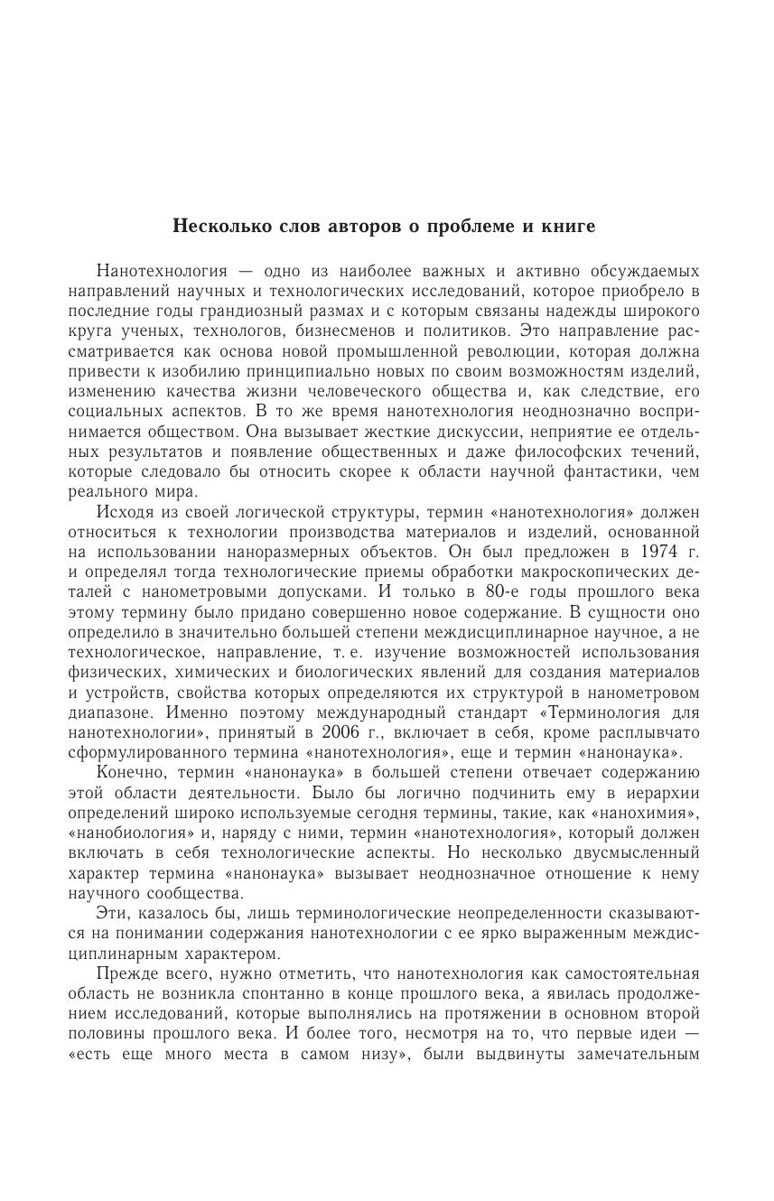 В доступной для широкого круга читателей форме рассматриваются история возникновения, основные направления и физико-химические принципы современных нанотехнологий, включая планарную технологию, супрамолекулярную химию, молекулярную электронику, получение наночастиц и наноструктурированных материалов. Подробно обсуждаются два основных пути создания наноматериалов: «снизу–вверх» и «сверху–вниз», а также методы изучения наноструктур и влияния размерных эффектов на их свойства. В основу книги положен курс лекций, которые в течение нескольких лет читаются одним из авторов на кафедре физики полимеров и кристаллов физического факультета Московского государственного университета.Книга адресована студентам, аспирантам и специалистам, интересующимся вопросами нанотехнологий.