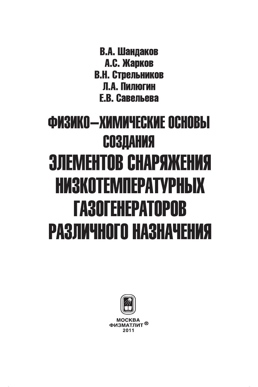 Физико-химические основы создания элементов снаряжения низкотемпературных газогенераторов различного назначения