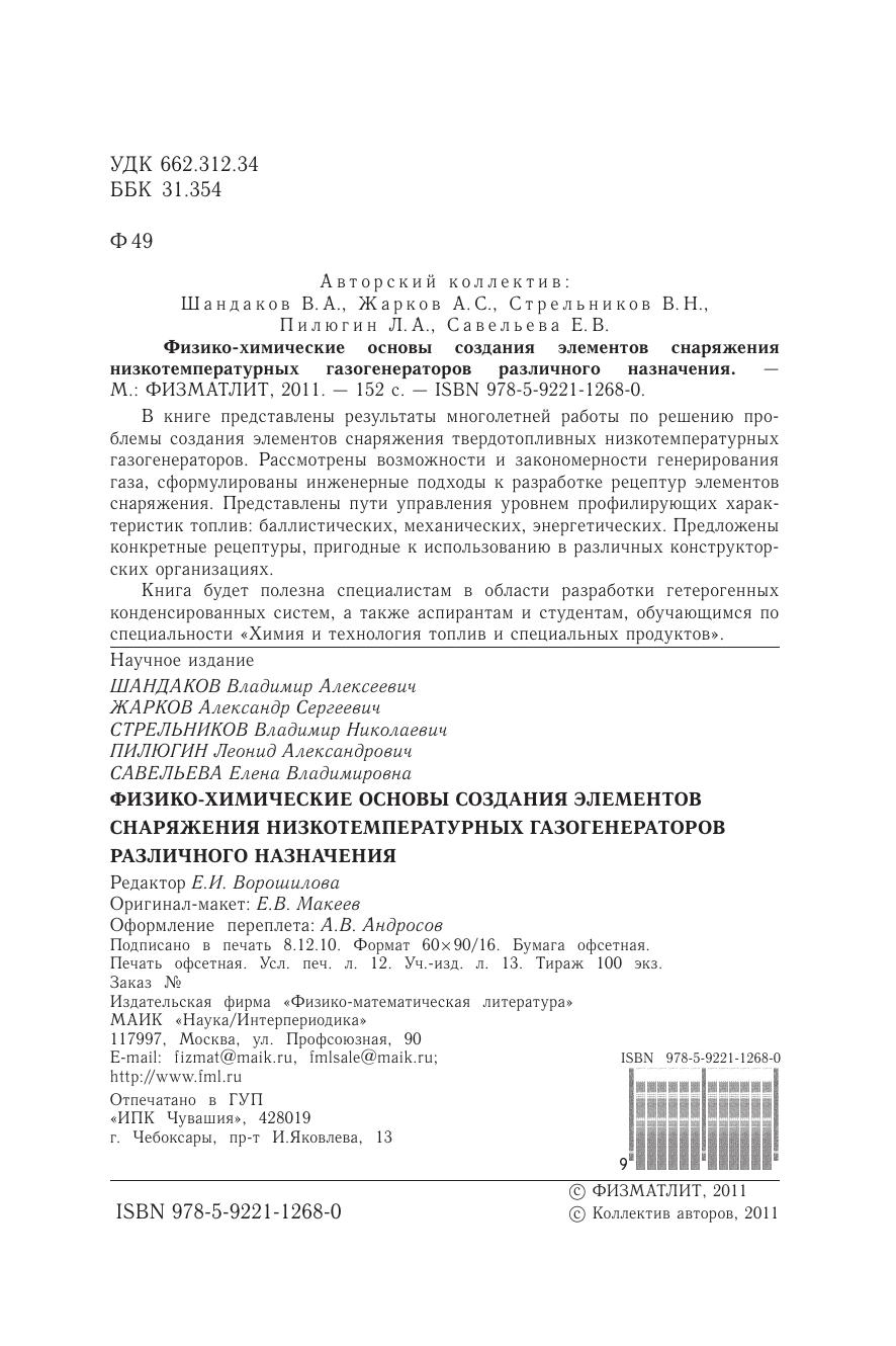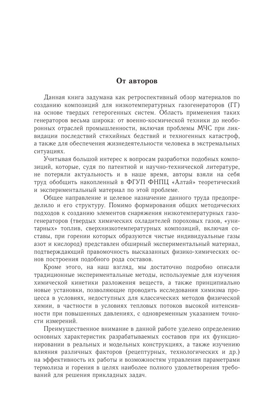 В книге представлены результаты многолетней работы по решению проблемы создания элементов снаряжения твердотопливных низкотемпературных газогенераторов. Рассмотрены возможности и закономерности генерирования газа, сформулированы инженерные подходы к разработке рецептур элементов снаряжения. Представлены пути управления уровнем профилирующих характеристик топлив: баллистических, механических, энергетических. Предложены конкретные рецептуры, пригодные к использованию в различных конструкторских организациях. Книга будет полезна специалистам в области разработки гетерогенных конденсированных систем, а также аспирантам и студентам, обучающимся по специальности «Химия и технология топлив и специальных продуктов».