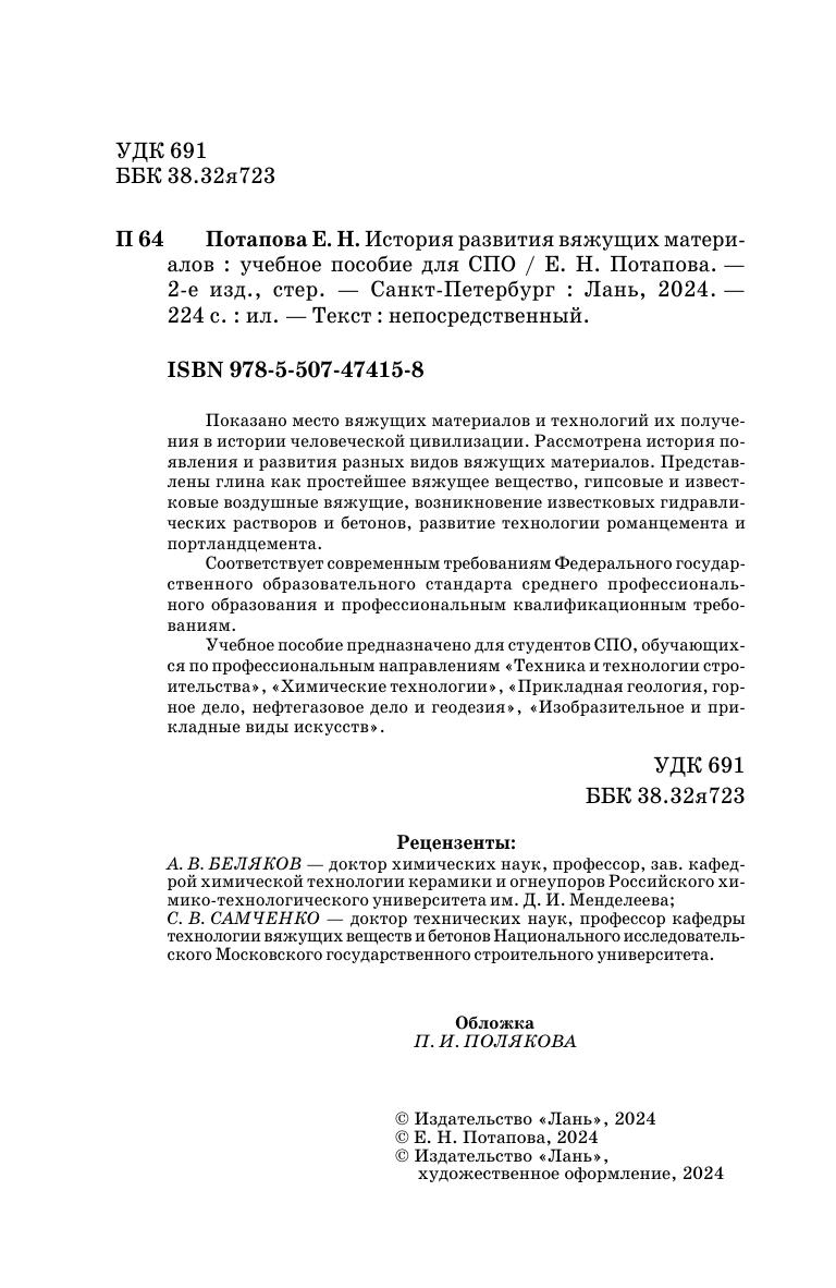 Показано место вяжущих материалов и технологий их получения в истории человеческой цивилизации. Рассмотрена история появления и развития разных видов вяжущих материалов. Представлены глина как простейшее вяжущее вещество, гипсовые и известковые воздушные вяжущие, возникновение известковых гидравлических растворов и бетонов, развитие технологии романцемента и портландцемента. Соответствует современным требованиям Федерального государственного образовательного стандарта среднего профессионального образования и профессиональным квалификационным требованиям. Учебное пособие предназначено для студентов СПО, обучающихся по профессиональным направлениям «Техника и технологии строительства», «Химические технологии», «Прикладная геология, горное дело, нефтегазовое дело и геодезия», «Изобразительное и прикладные виды искусств».