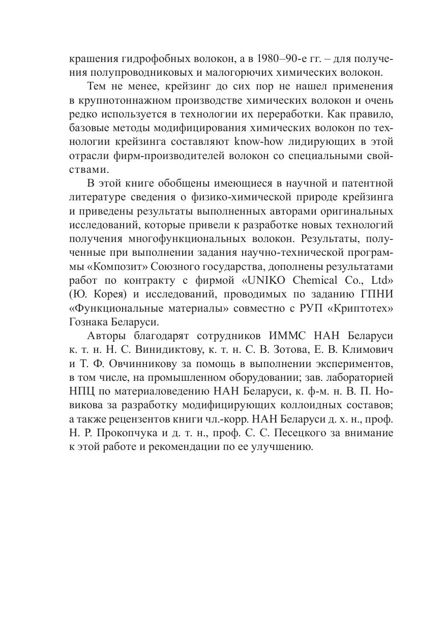 В монографии обобщены имеющиеся в научной и патентной литературе сведения о природе крейзинга и приведены результаты оригинальных исследований авторов по реализации этого явления, которые привели к разработке новых технологий получения многофункциональных полиэфирных волокон. Предназначена для научно-технических работников, инженеров и конструкторов, занятых разработкой перспективных материалов. Она будет полезна студентам, магистрантам и аспирантам при изучении дисциплин материаловедческого и химико-технологического профиля.