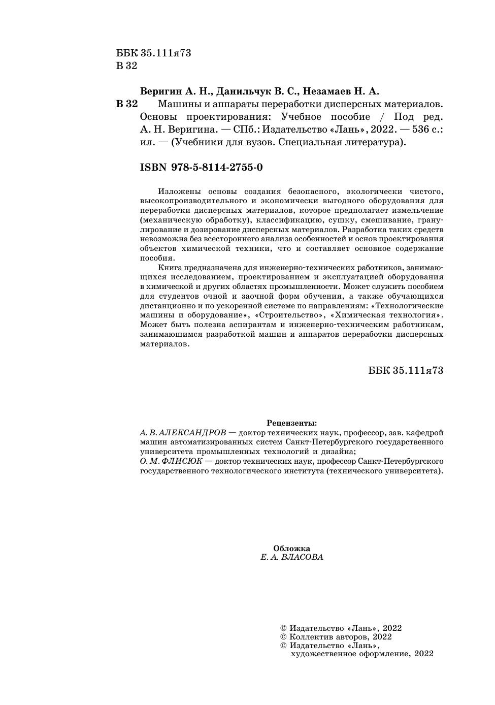Изложены основы создания безопасных, экологически чистых, высокопроизводительного и экономически выгодного оборудования для переработки дисперсных материалов, которое предполагает измельчение (механическую обработку), классификацию, сушку, смешивание, гранулирование и дозирование дисперсных материалов. Разработка таких средств невозможна без всестороннего анализа особенностей и основ проектирования объектов химической техники, что и составляет основное содержание пособия. Книга предназначена для инженерно-технических работников, занимающихся исследованием проектированием и эксплуатацией оборудования в химической и других областях промышленности. Может служить пособием для студентов очной и заочной форм обучения, а также обучающихся дистанционно и по ускоренной системе по направлениям: «Технологические машины и оборудование», «Строительство», «Химическая технология». Может быть полезна аспирантам и инженерно-техническим работникам, занимающимся разработкой машин и аппаратов переработки дисперсных материалов.