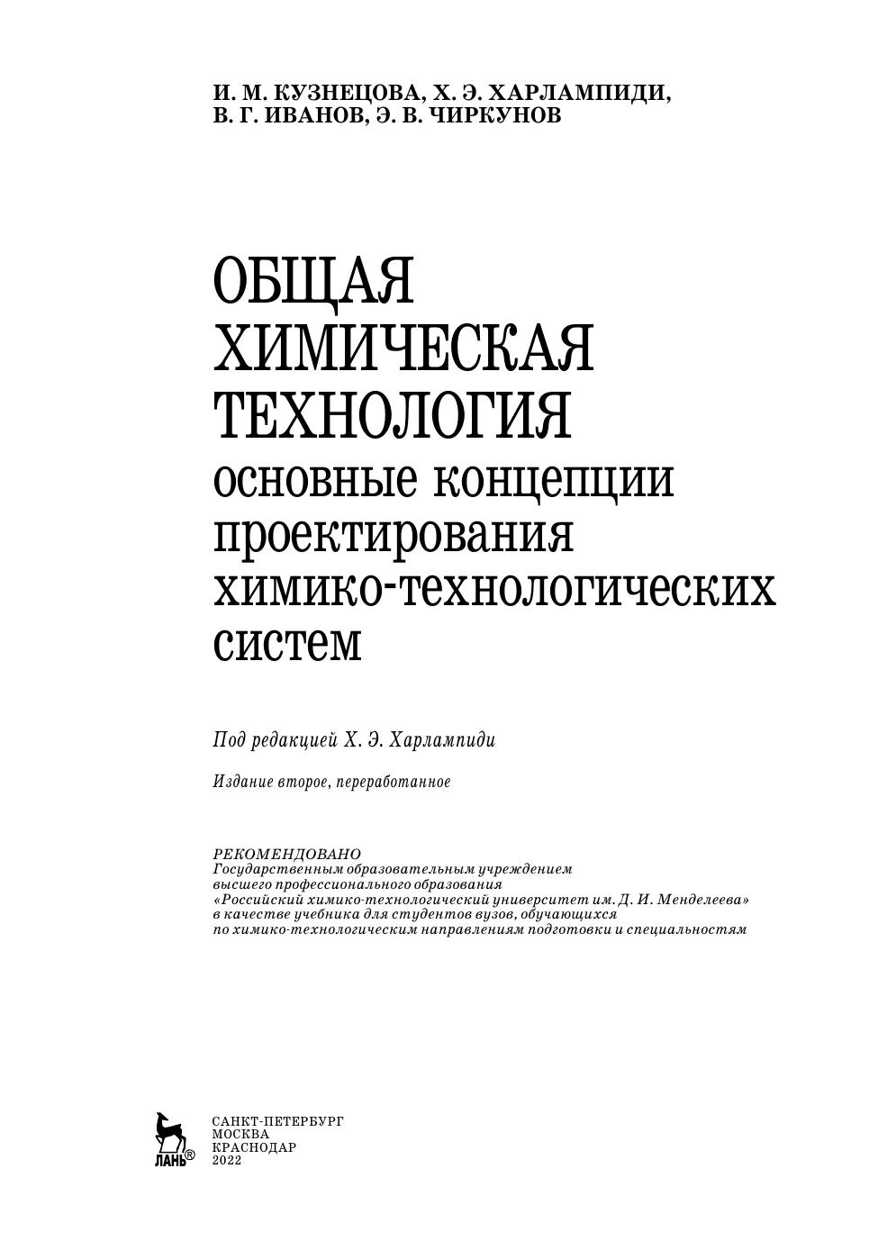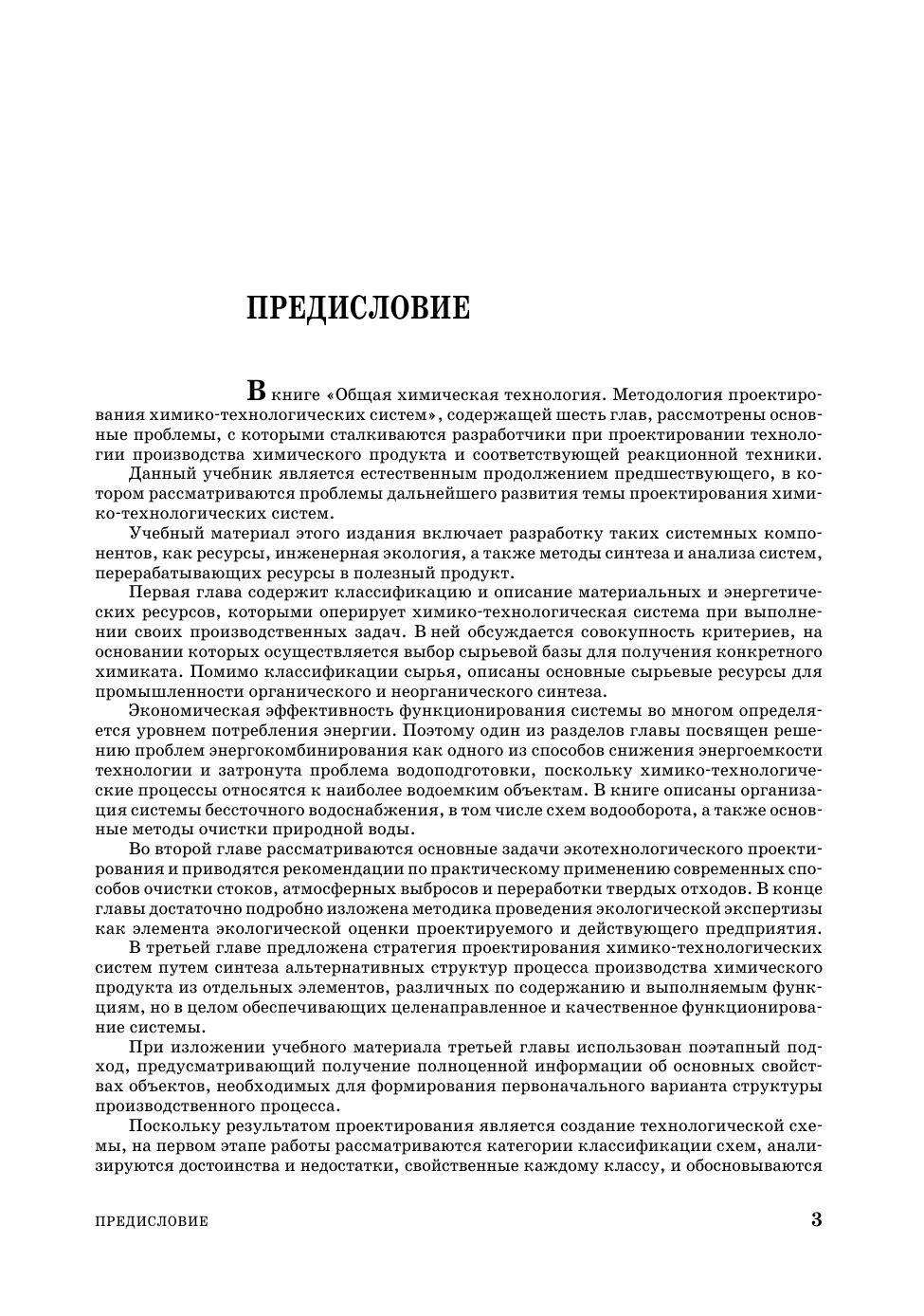 В учебнике изложены основы методологии проектирования важнейших компонентов химико-технологических систем, начиная от выбора ресурсов и способа производства химического продукта и заканчивая разработкой общей структуры производящей системы. В данной книге (четыре главы) рассмотрены основные ресурсы химико-технологической системы, проблемы экологизации, материало- и энергосбережения. Завершают книгу методы синтеза общей структуры ХТС и системного анализа ключевых факторов эффективности ее функционирования. Учебник предназначен для студентов и аспирантов химико-технологических специальностей вузов, а также для слушателей факультетов повышения квалификации, для инженерно-технических работников, занимающихся проектированием, модернизацией, исследованием и эксплуатацией системотехнических комплексов химического профиля. Книга может быть также полезна разработчикам реакционной химической техники и систем управления технологическими процессами.