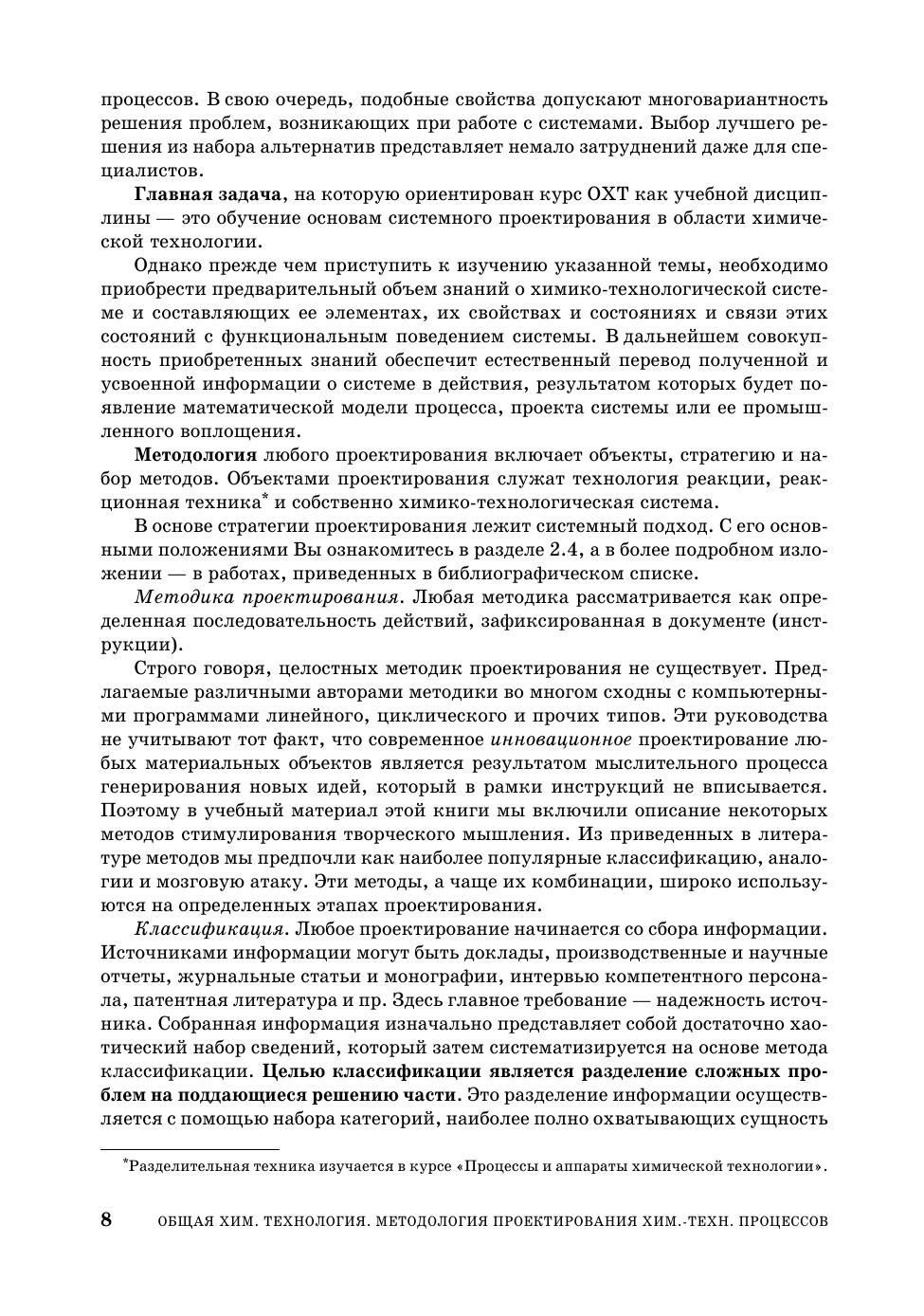 В учебном пособии изложены основы методологии проектирования важнейших компонентов химико-технологических систем, начиная от выбора ресурсов и способа производства химического продукта и заканчивая разработкой общей структуры производящей системы. В данной книге рассматриваются методики проектирования технологии реакции и соответствующей реакционной техники. Книга предназначена для студентов и аспирантов химико-технологических специальностей высших учебных заведений, а также для слушателей факультетов повышения квалификации, для инженерно-технических работников, занимающихся проектированием, модернизацией, исследованием и эксплуатацией системотехнических комплексов химического профиля. Книга может быть также полезна разработчикам реакционной химической техники и систем управления технологическими процессами.
