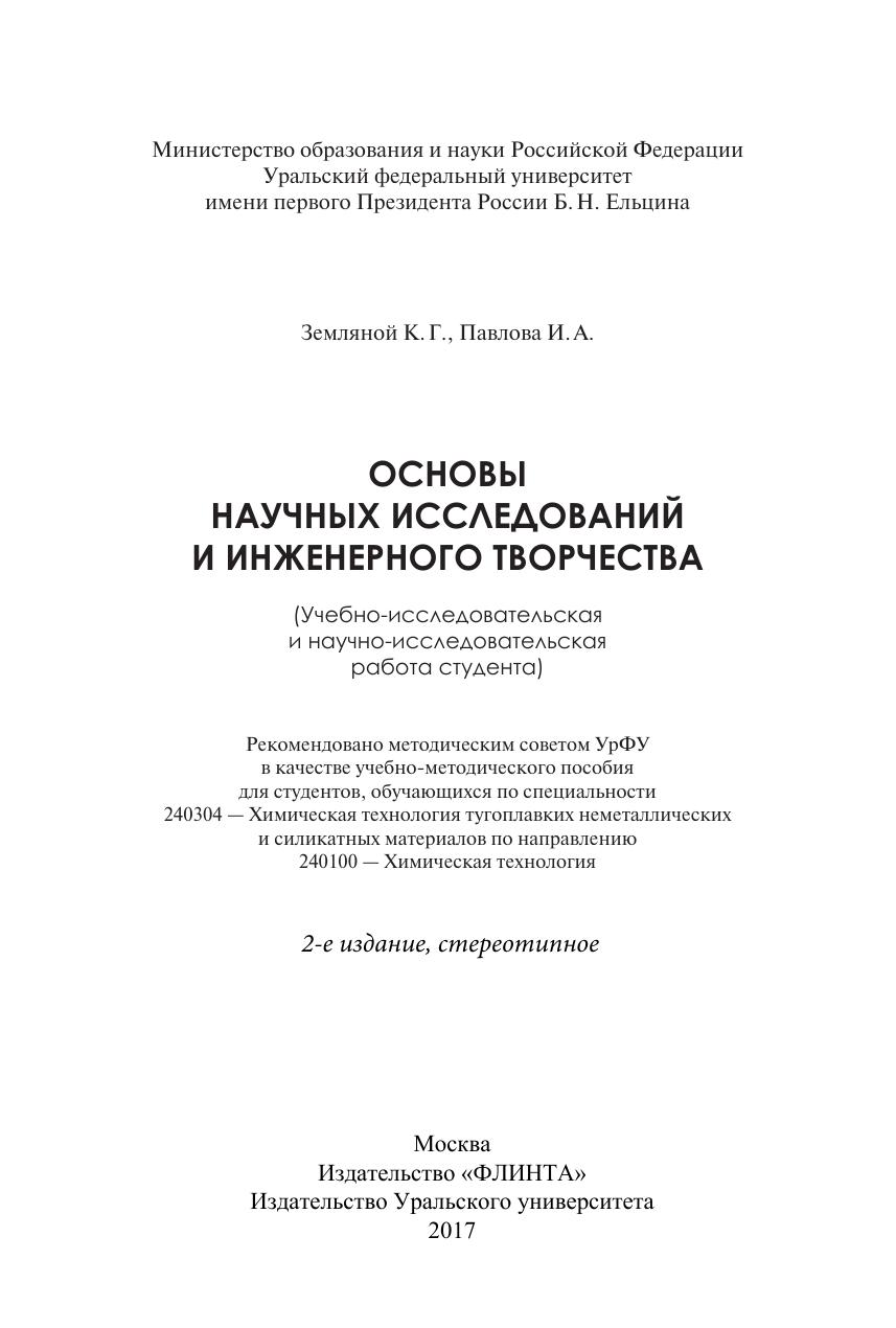 Основы научных исследований и инженерного творчества (учебно-исследовательская и научно-исследовательская работа студента)