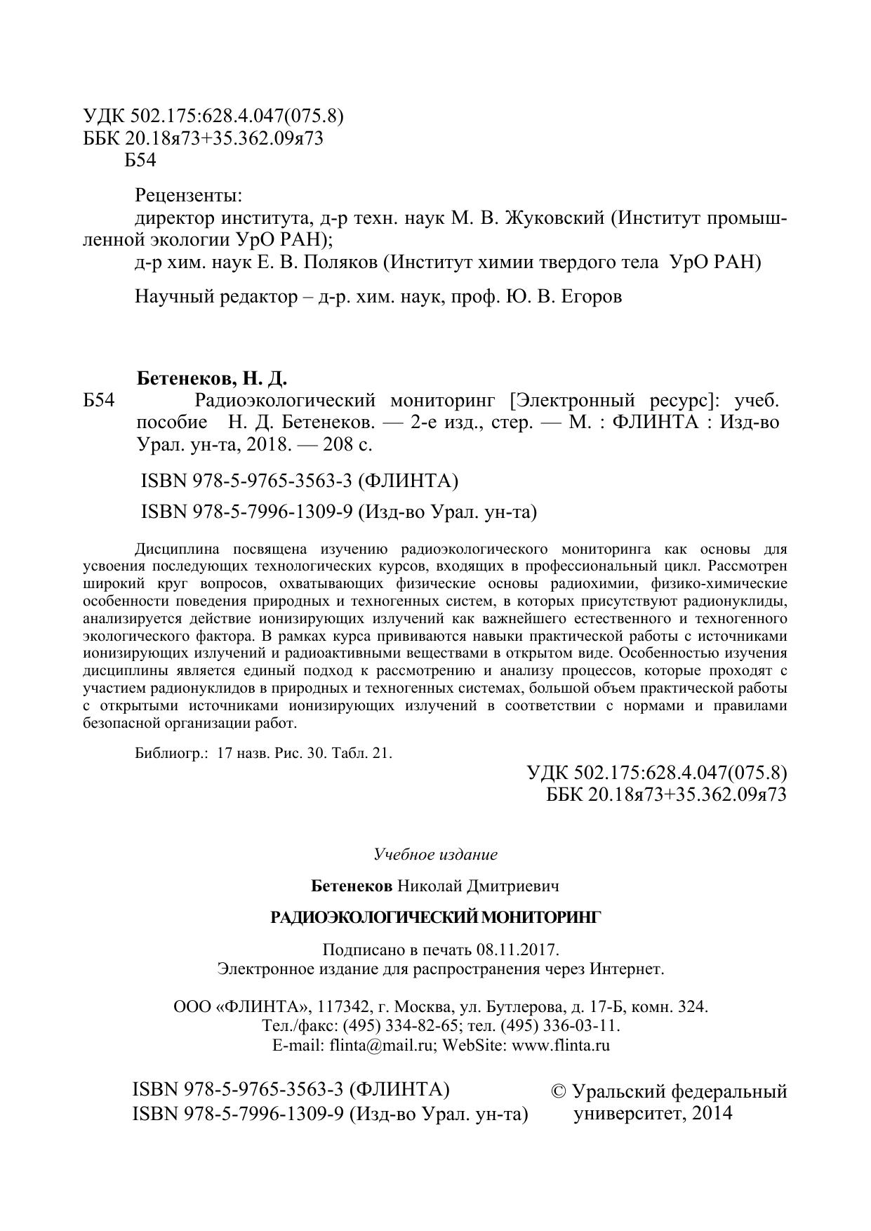 Дисциплина посвящена изучению радиоэкологического мониторинга как основы дл усвоения последующих технологических курсов, входящих в профессиональный цикл. Рассмотрен широкий круг вопросов, охватывающих физические основы радиохимии, физико-химические особенности поведения природных и техногенных систем, в которых присутствуют радионуклиды, анализируется действие ионизирующих излучений как важнейшего естественного и техногенного экологического фактора. В рамках курса прививаются навыки практической работы с источниками ионизирующих излучений и радиоактивными веществами в открытом виде. Особенностью изучения дисциплины является единый подход к рассмотрению и анализу процессов, которые проходят с участием радионуклидов в природных и техногенных системах, большой объем практической работы с открытыми источниками ионизирующих излучений в соответствии с нормами и правилами безопасной организации работ.