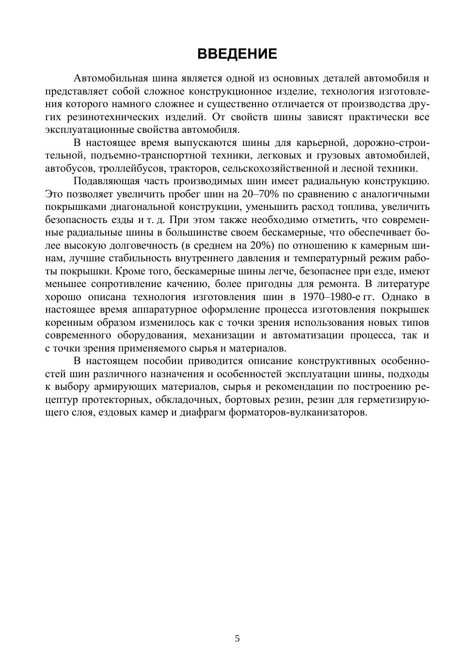 Учебное пособие включает информацию об истории развития шинной отрасли, типах и строении пневматических шин для различного вида транспорта, сырье и материалах для изготовления шин, влиянии различных свойств резин на эксплуатационные характеристики шин, о подходах к рецептуростроению шинных резиновых смесей. Пособие является основой для изучения дисциплин «Технология производства шин», «Технология резиновых изделий», «Эксплуатационные свойства пневматических шин и методы их оценки». Для студентов профильных вузов и специалистов.