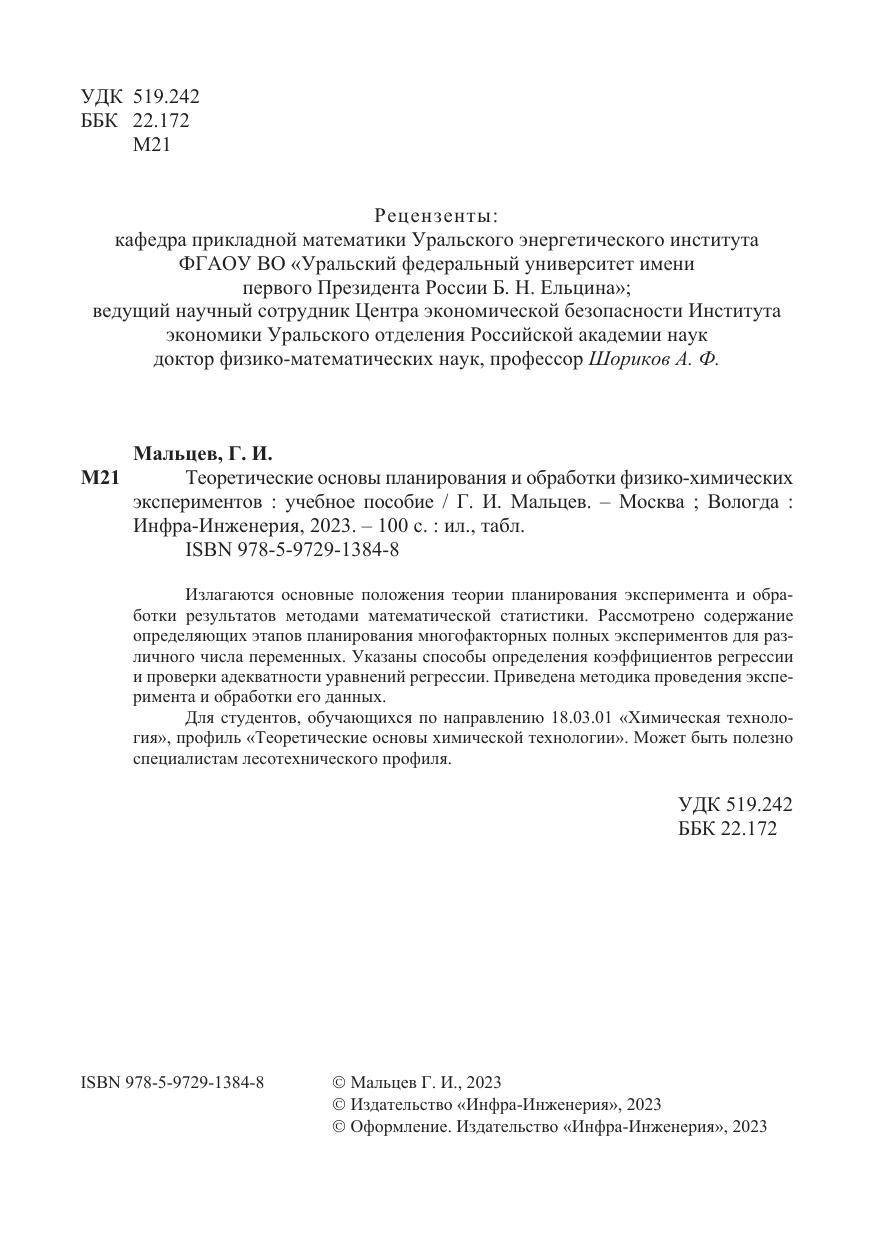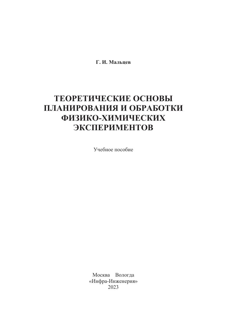 Теоретические основы планирования и обработки физико-химических экспериментов