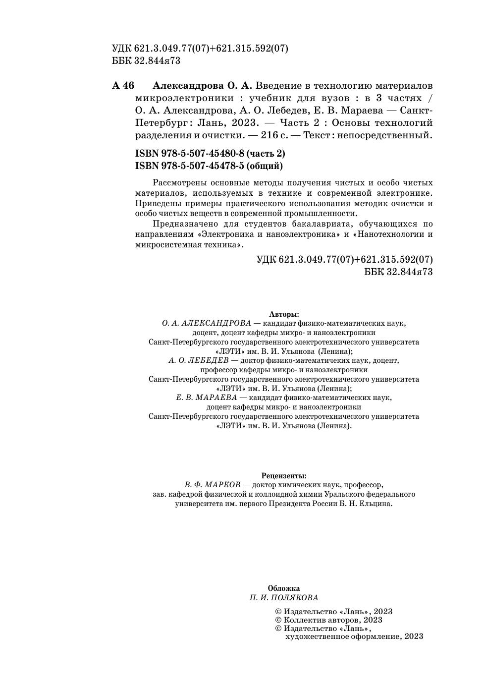 Рассмотрены основные методы получения чистых и особо чистых материалов, используемых в технике и современной электронике. Приведены примеры практического использования методик очистки и особо чистых веществ в современной промышленности. Предназначено для студентов бакалавриата, обучающихся по направлениям «Электроника и наноэлектроника» и «Нанотехнологии и микросистемная техника».