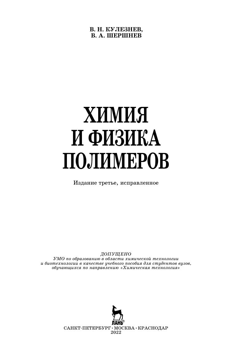 В учебном пособии в сжатой форме изложены научные основы получения полимеров, описана их структура и ее зависимость от методов синтеза, рассмотрены физические и механические свойства полимеров в связи с их структурой, химической природой и физическими состояниями, приведены основные химические реакции полимеров и показаны возможности стабилизации, химической и физической модификации полимеров для получения нового комплекса свойств, в том числе путем сшивания макромолекул и формирования сетчатых структур. Указаны пути более полного и долговечного использования полимерных материалов и изделий. Для студентов вузов, обучающихся по направлению «Химическая технология». Может быть использовано научными сотрудниками и специалистами, работающими в области полимеров и полимерного материаловедения.