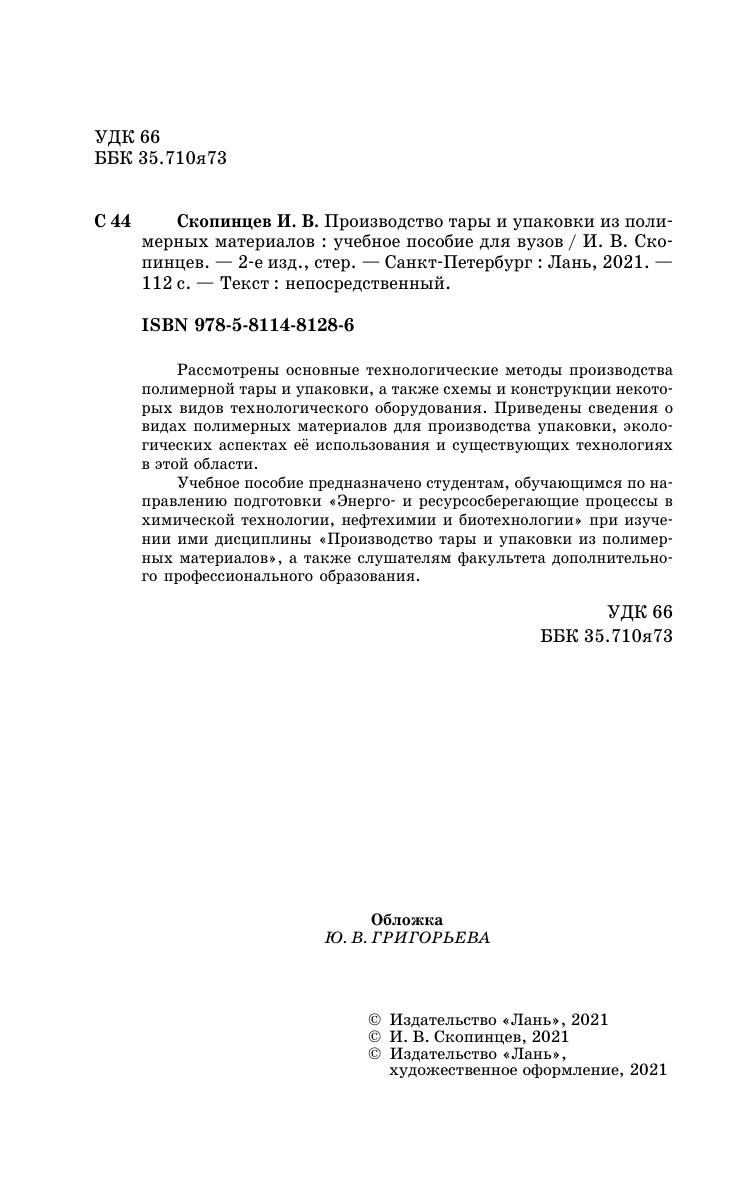 Учебное пособие предназначено студентам, обучающимся по направлению подготовки «Энерго- и ресурсосберегающие процессы в химической технологии, нефтехимии и биотехнологии» при изучении ими дисциплины «Производство тары и упаковки из полимерных материалов», а также слушателям факультета дополнительного профессионального образования.