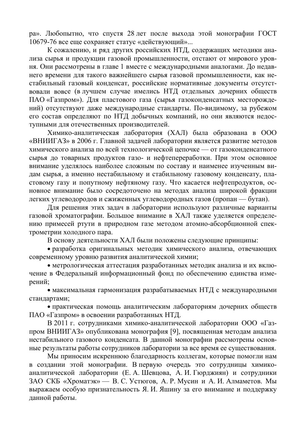 В монографии рассмотрены современные подходы к определению полного химического состава «жирных» углеводородных газов (попутного нефтяного газа и газа сепарации), нестабильного газового конденсата (НГК) и стабильного газового конденсата, сжиженных углеводородных газов, широкой фракции легких углеводородов и дистиллятов, развитые в химико-аналитической лаборатории ООО «Газпром ВНИИГАЗ». Основное внимание авторов уделено методам определения углеводородного состава, включая высококипящие углеводороды (до С44), индивидуальных серосодержащих соединений (сероводорода, меркаптанов, органических сульфидов и ди-сульфидов, производных тиофена и т. д.), а также неорганических газов иметанола. Наряду с классическими подходами к анализу проб НГК вмонографии рассмотрены методы анализа, основанные на прямой подаче проб под давлением до 10 МПа в газовый хроматограф. Разработанные методики анализа в максимальной степени унифицированы сдействую-щими международными стандартами. В монографии также рассмотрены такие важные вопросы, как расчет состава пластового газа (сырье газо-конденсатных месторождений) и определение примесей ртути вприродном газе. Издание предназначено для аспирантов и студентов направлений подготовки и специальностей, входящих в УГСН «Химия», «Химические технологии», а также для широкого круга специалистов и сотрудников производственных и испытательных лабораторий нефтегазового профиля.
