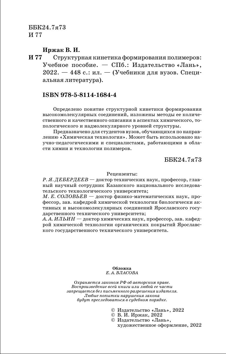 Определено понятие структурной кинетики формирования высокомолекулярных соединений, изложены методы ее количественного и качественного описания в аспектах химического, топологического и надмолекулярного уровней структуры. Предназначено для студентов старших курсов, магистрантов, аспирантов, научно-педагогических и производственных работников обучающихся и работающих в области химии и технологии полимеров.