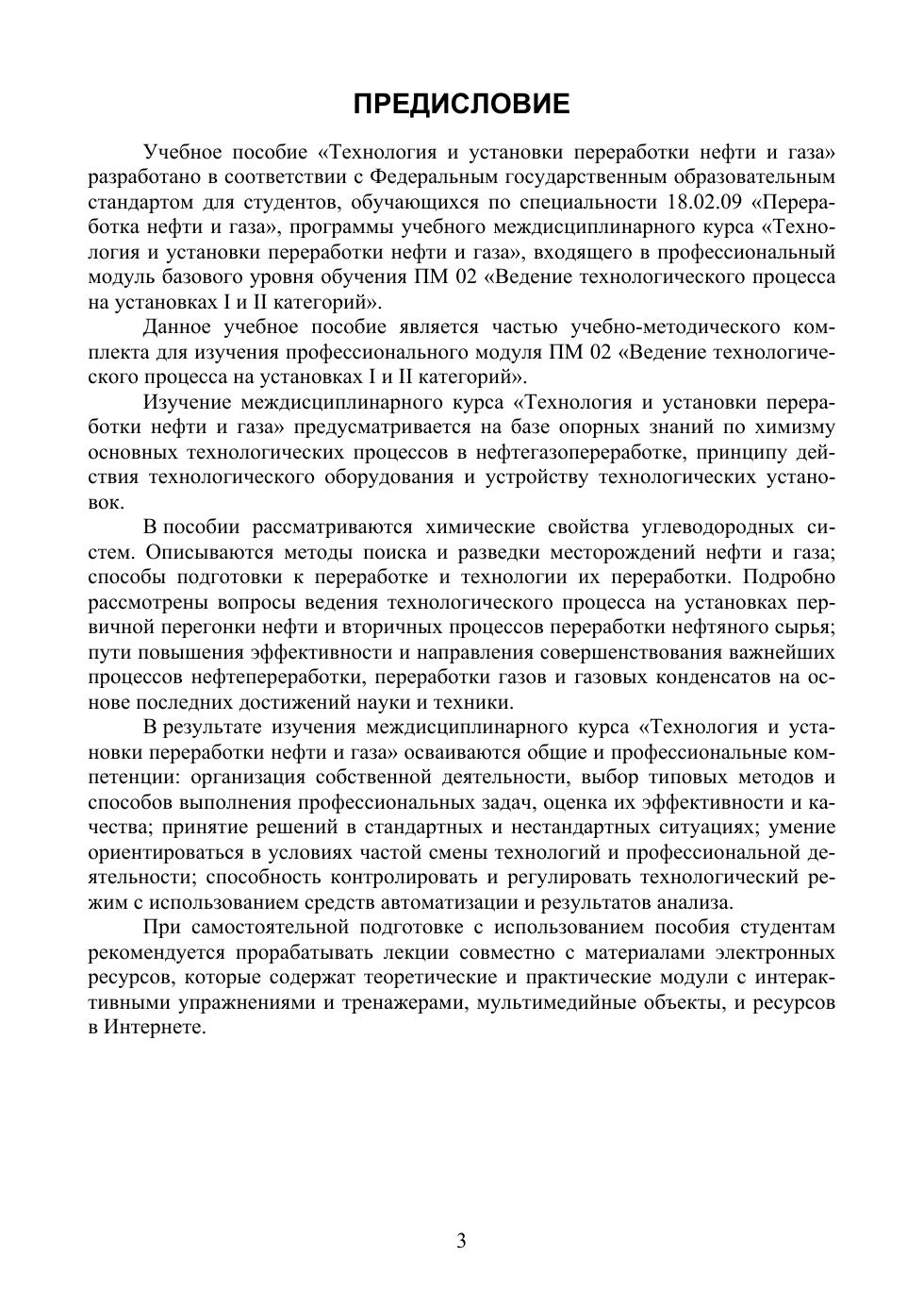 Пособие разработано в соответствии с Федеральным государственным образовательным стандартом и программой учебного междисциплинарного курса «Технология и установки переработки нефти и газа», входящего в профессиональный модуль базового уровня обучения ПМ 02 «Ведение технологического процесса на установках I и II категорий». В книге изложены сведения о химических свойствах углеводородных систем, описаны методы и способы поиска и разведки месторождений нефти и газа. Подробно рассмотрены вопросы ведения технологического процесса на установках первичной перегонки нефти и вторичных процессов переработки нефтяного сырья, пути повышения эффективности и направления совершенствования важнейших процессов нефтепереработки, переработки газов и газовых конденсатов. Пособие предназначено для студентов образовательных учреждений СПО, обучающихся по специальности «Переработка нефти и газа».