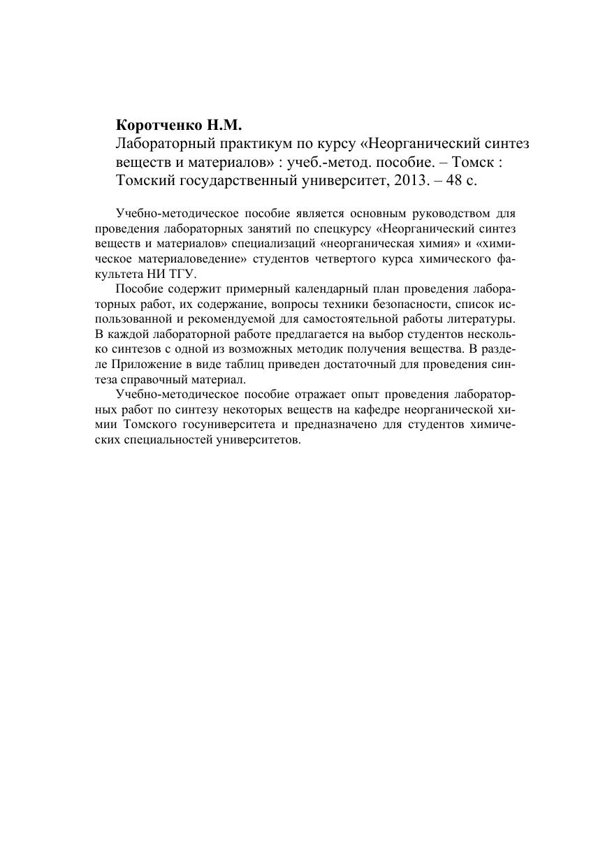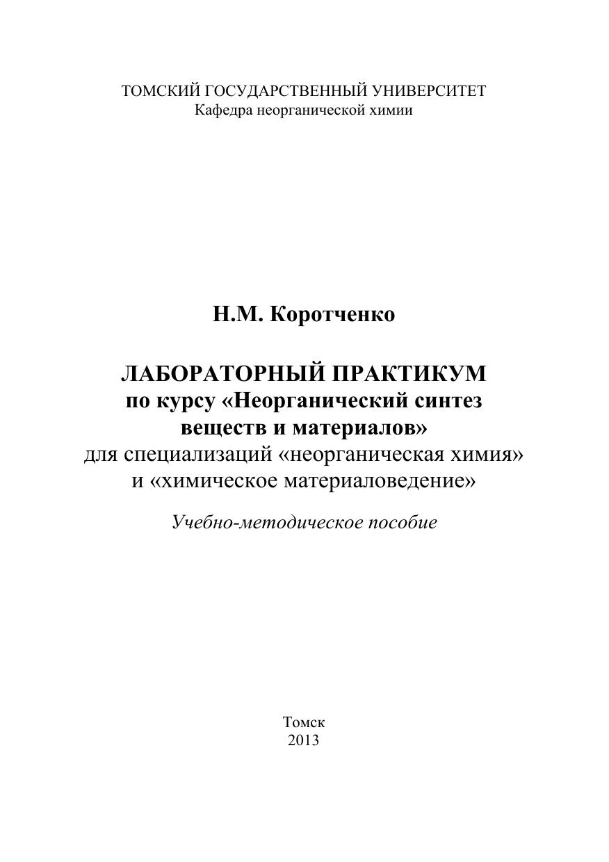 Лабораторный практикум по курсу «Неорганический синтез веществ и материалов
