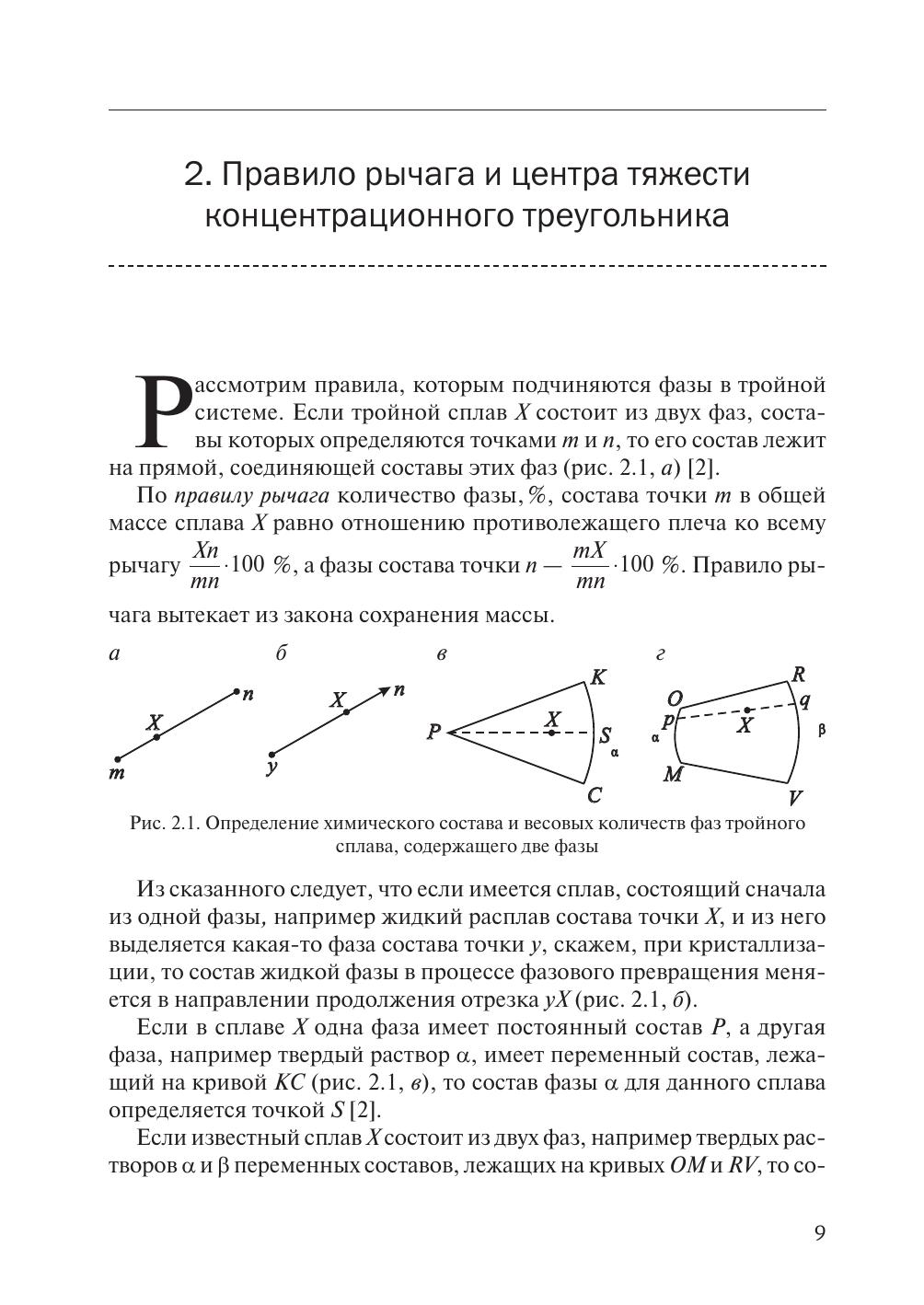 Пособие предназначено для бакалавров, обучающихся по направлениям технического профиля, изучающих курсы «Материаловедение» и «Металловедение». В пособии рассмотрены диаграммы тройных систем, методика определения фазового и структурного состава тройных сплавов в условиях равновесия. Описываемые диаграммами закономерности формирования структуры сплавов позволяют в ряде случаев указывать ожидаемый характер изменения их структуры и свойств при переходе к неравновесному состоянию. В пособии уделено внимание не только теории, но и практическим вопросам реальных диаграмм тройных систем.