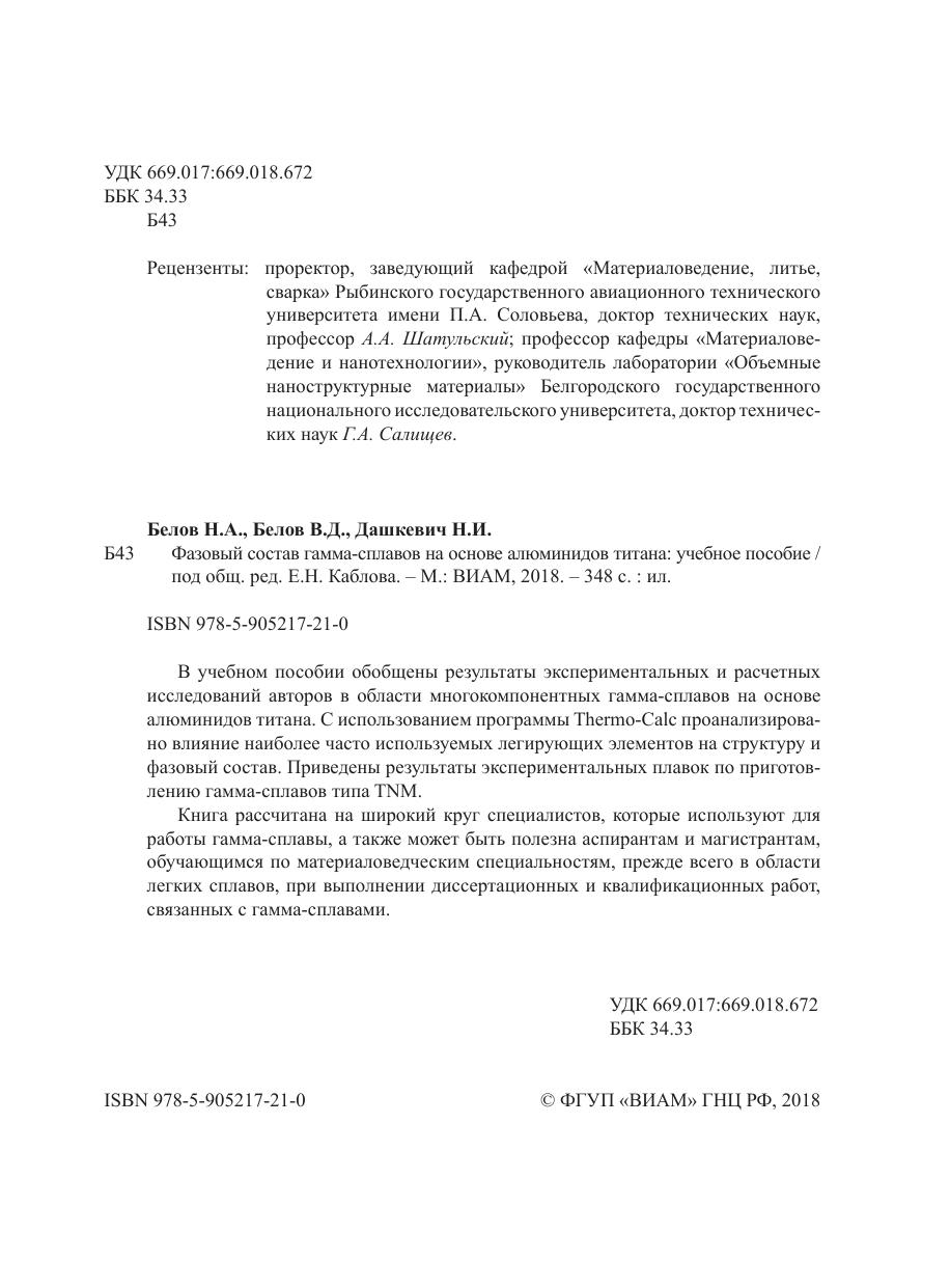 Авторы: Белов Н.А., Белов В.Д., Дашкевич Н.И.