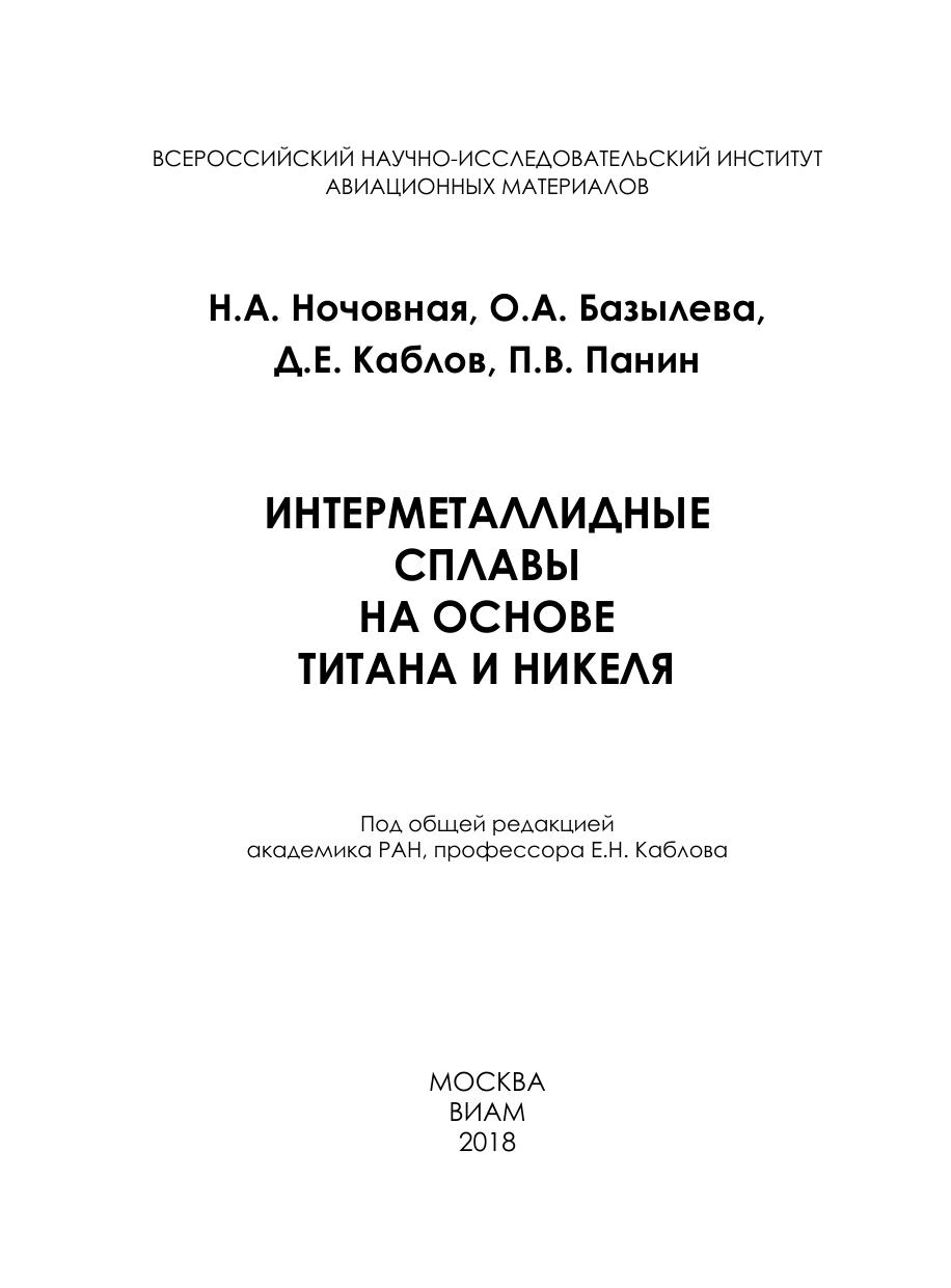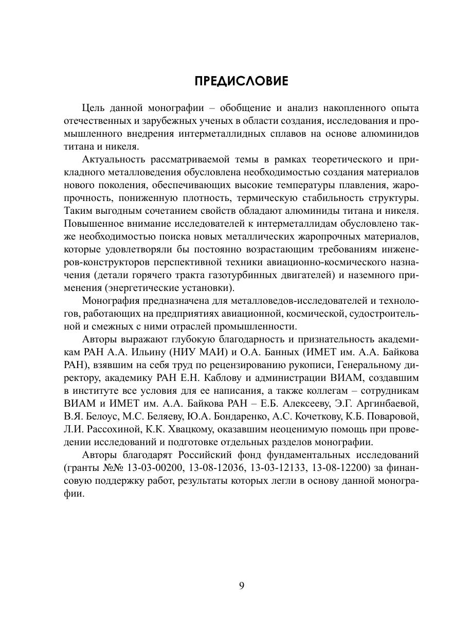 Издание предназначено для работников авиационной, космической, судостроительной и смежных с ними отраслей промышленности, в сферу научных интересов которых входят вопросы разработки и применения интерметаллидных сплавов. Книга также может быть полезна для студентов и аспирантов в качестве дополнительной учебной литературы по металловедческим специальностям.