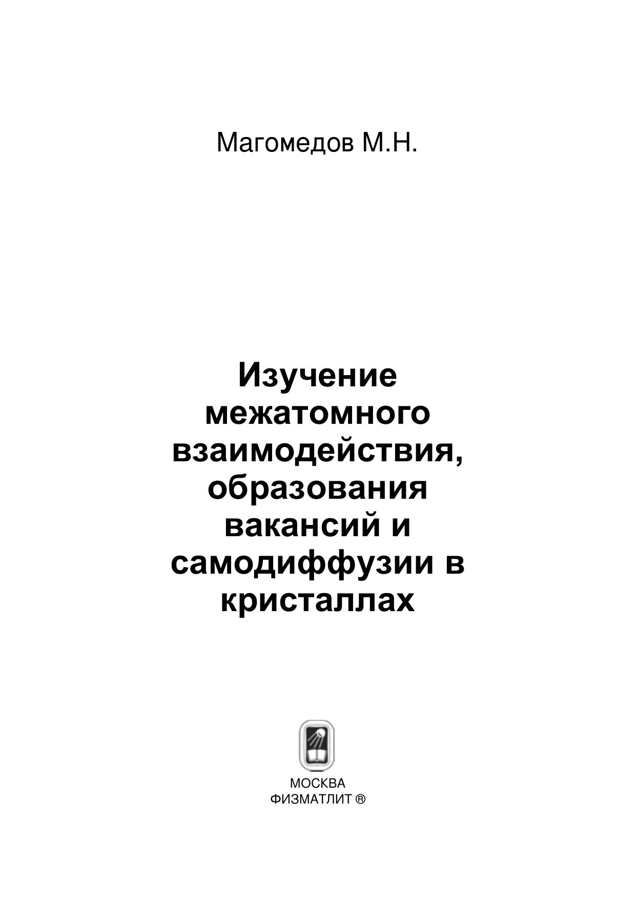 Изучение межатомного взаимодействия, образования вакансий и самодиффузии в кристаллах