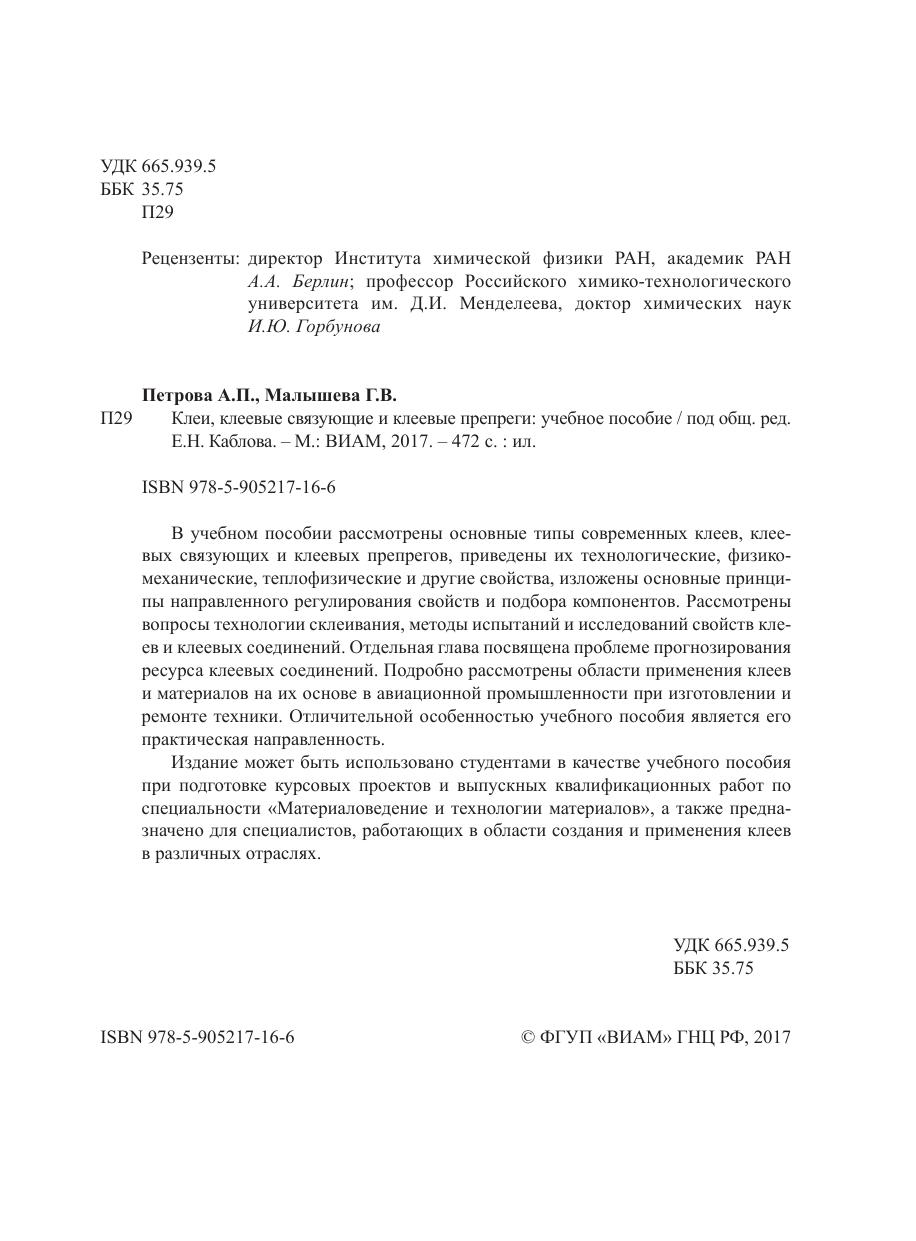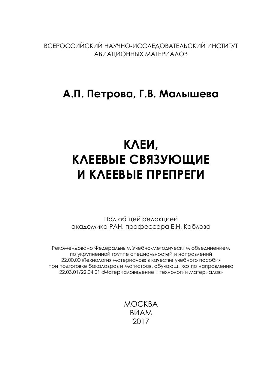 Издание может быть использовано студентами в качестве учебного пособия при подготовке курсовых проектов и выпускных квалификационных работ по специальности «Материаловедение и технологии материалов», а также предназначено для специалистов, работающих в области создания и применения клеев в различных отраслях.