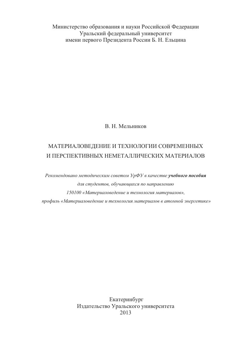 Материаловедение и технологии современных и перспективных неметаллических материалов: учебное пособие