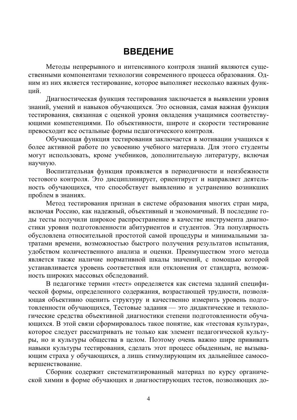 Учебное пособие посвящено использованию тематических тестовых заданий в качестве обучающей технологии в учебном процессе и при самостоятельном изучении курса органической химии. Содержит тестовые задания с ответами по всем основным темам, изучаемым по программе курса в высших учебных заведениях. Соответствует актуальным требованиям Федерального государственного образовательного стандарта высшего образования. Учебное пособие предназначено для студентов высших учебных заведений педагогических направлений подготовки по профилю химия и смежных специальностей, преподавателей вузов, техникумов, а также учителей и учащихся старших классов средней школы с углубленным и профильным образованием.