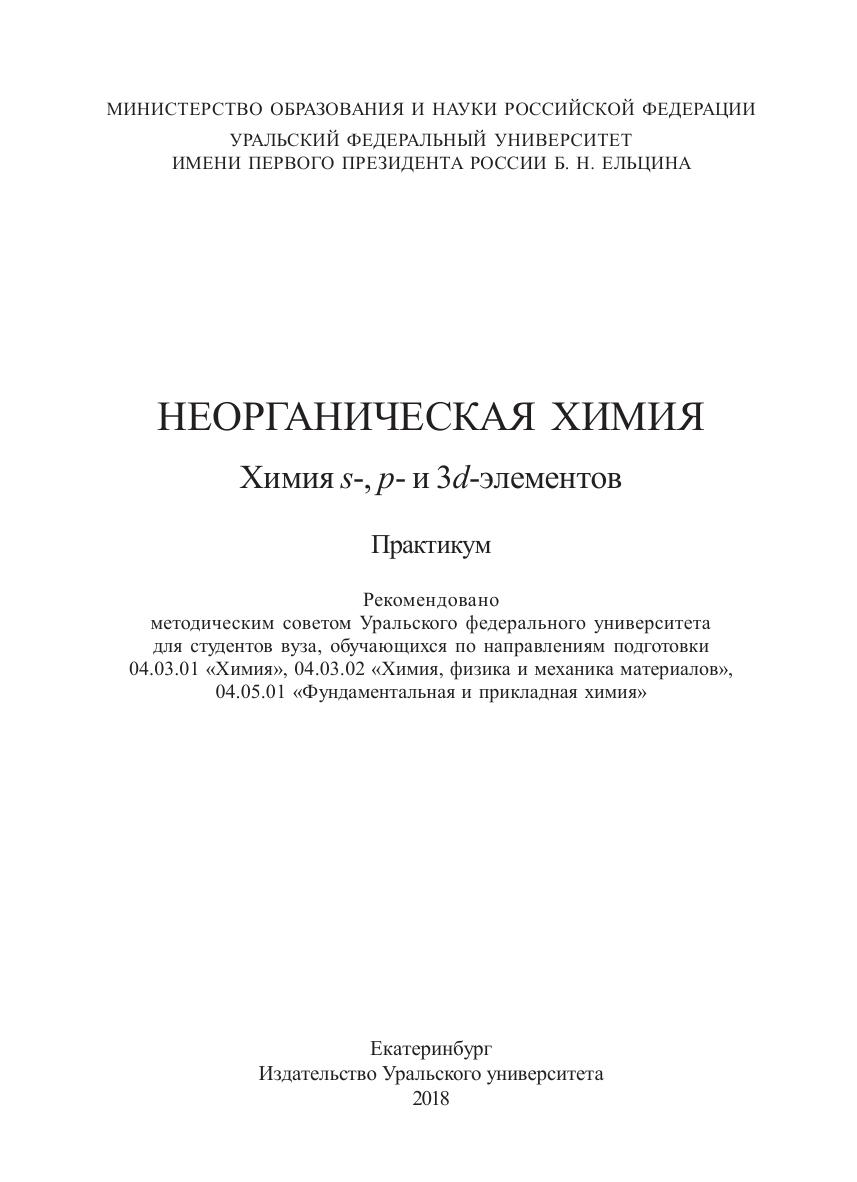 Неорганическая химия: Химия s-, p- и 3d-элементов: практикум