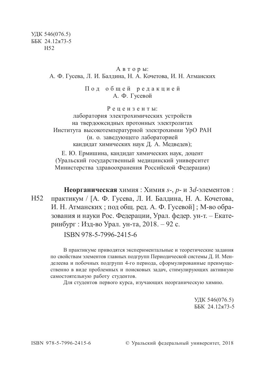 В практикуме приводятся экспериментальные и теоретические задания ьпо свойствам элементов главных подгрупп Периодической системы Д. И. Менделеева и побочных подгрупп 4-го периода, сформулированные преимущественно в виде проблемных и поисковых задач, стимулирующих активную самостоятельную работу студентов.