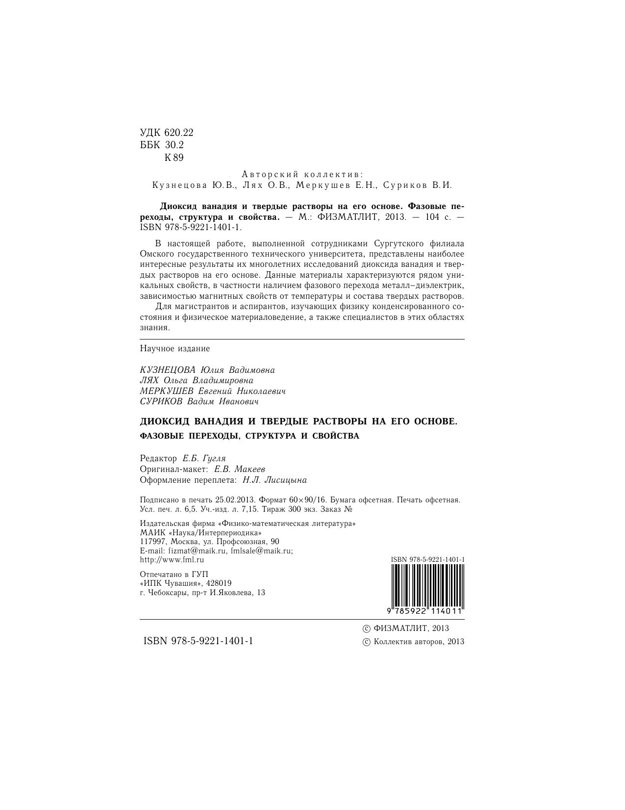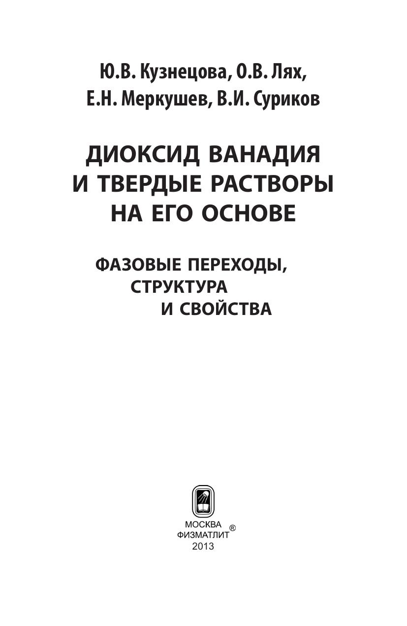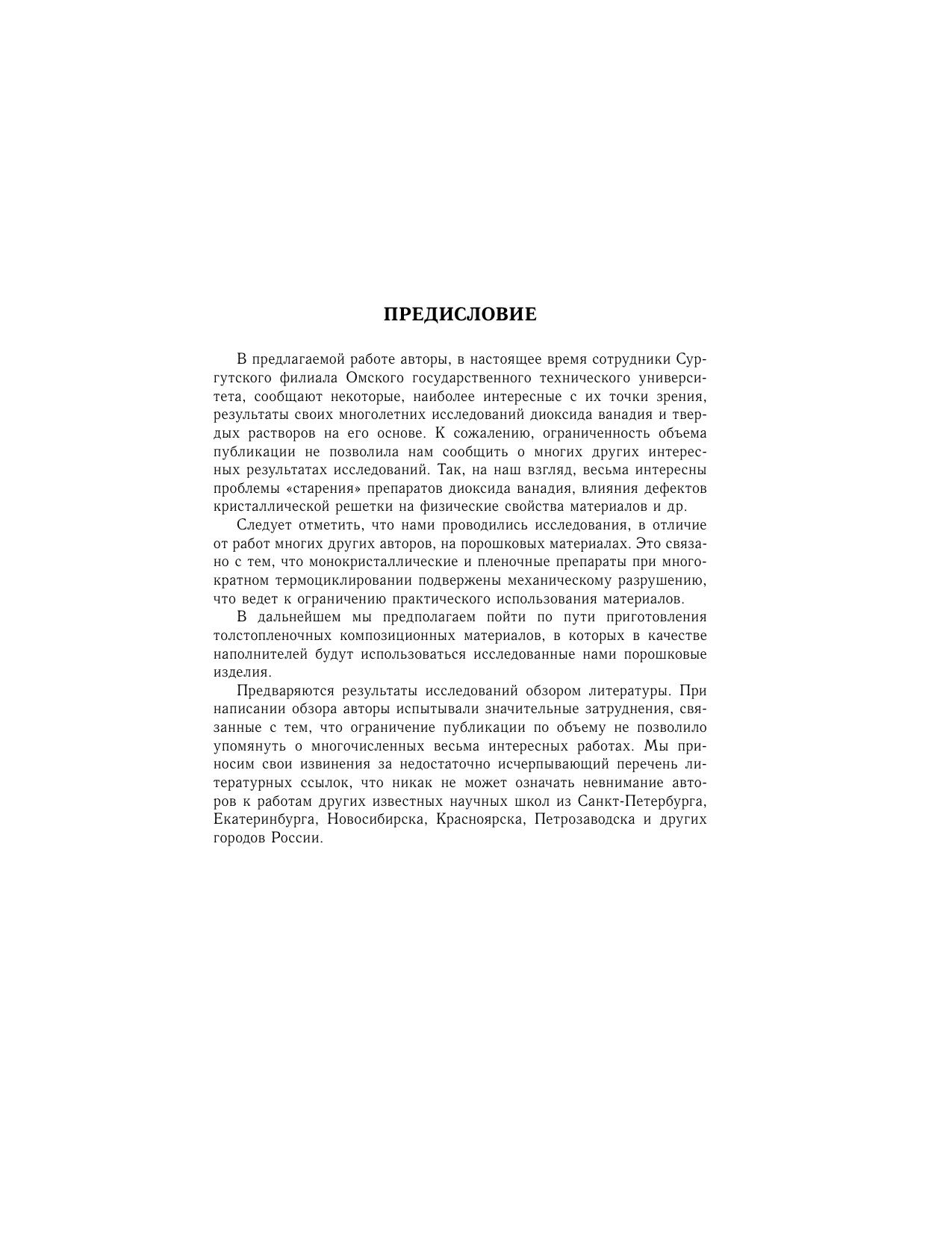 В настоящей работе, выполненной сотрудниками Сургутского филиала Омского государственного технического университета, представлены наиболее интересные результаты их многолетних исследований диоксида ванадия и твердых растворов на его основе. Данные материалы характеризуются рядом уникальных свойств, в частности наличием фазового перехода металл–диэлектрик, зависимостью магнитных свойств от температуры и состава твердых растворов. Для магистрантов и аспирантов, изучающих физику конденсированного состояния и физическое материаловедение, а также специалистов в этих областях знания.