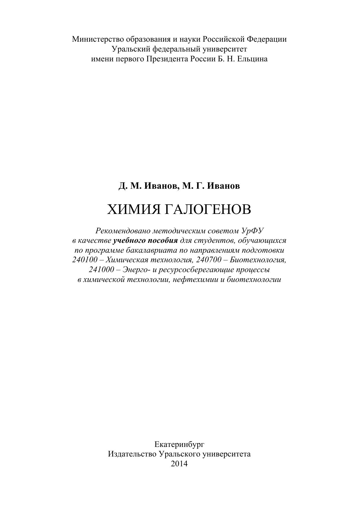 Химия галогенов: учеб. Пособие