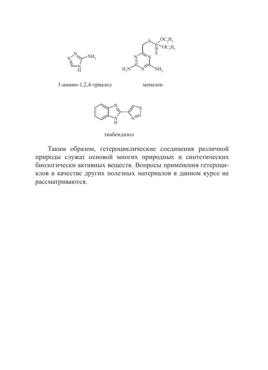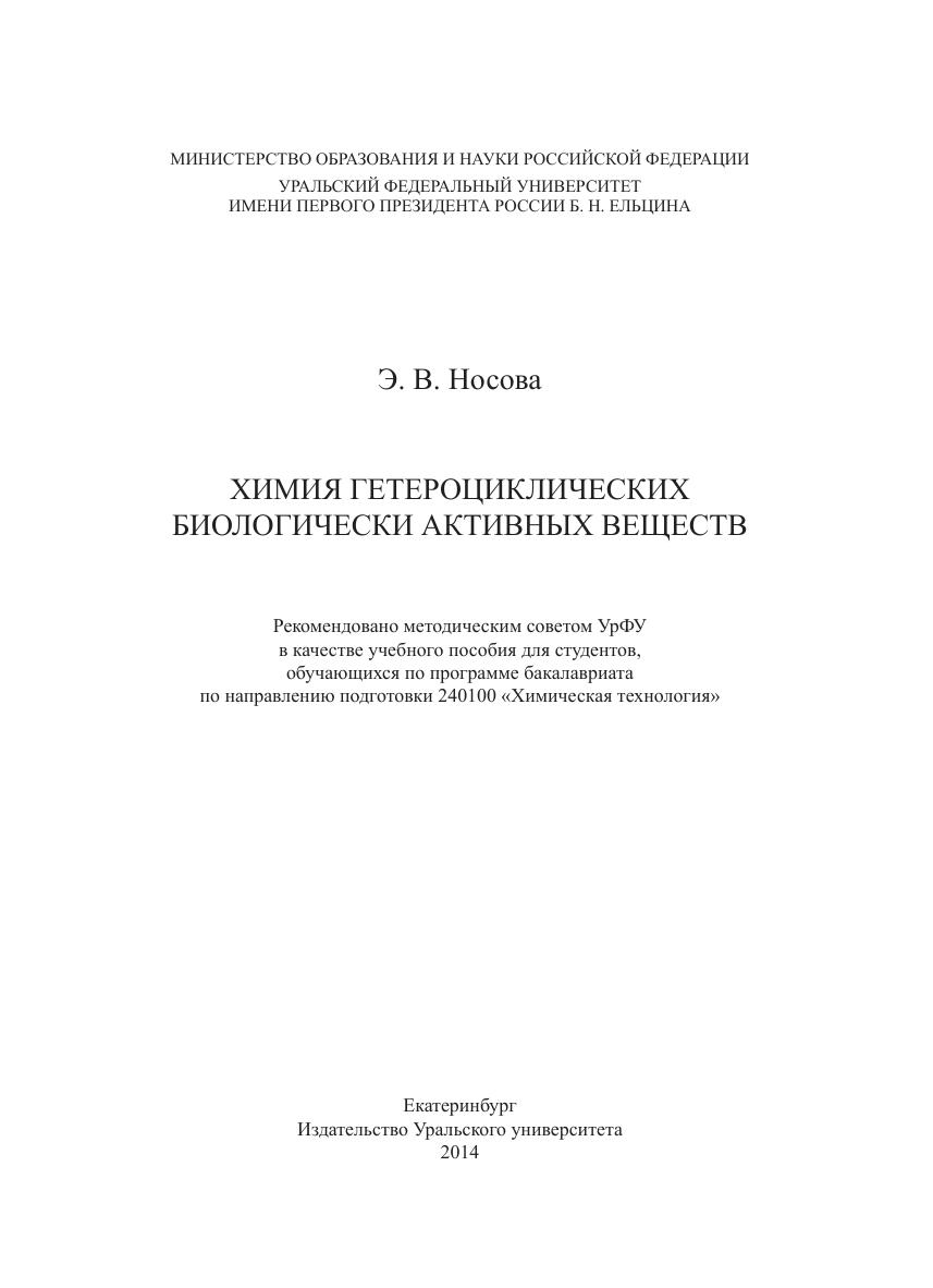 В учебном пособии приведены теоретические основы химии гетероциклических соединений, представлены биологически активные гетероциклические соединения природного и синтетического происхождения, даны подходы к синтезу лекарственных препаратов гетероциклической природы. Рекомендуется для самостоятельной работы студентов во время изучения дисциплины «Химия биологически активных веществ». Полезно студентам, изучающим дисциплины «Органическая химия», «Органическая химия веществ природного происхождения», «Биохимия», а также магистрантам, изучающим курс «Химия гетероциклических соединений», и аспирантам для подготовки к экзамену по органической химии.