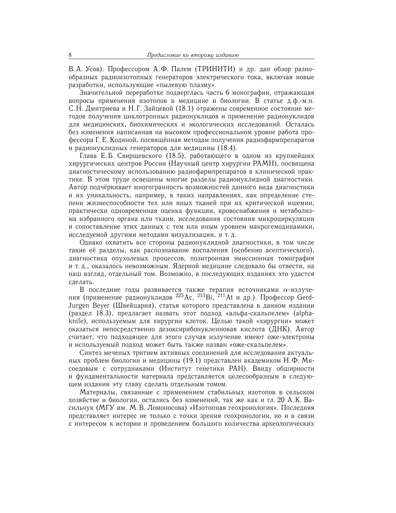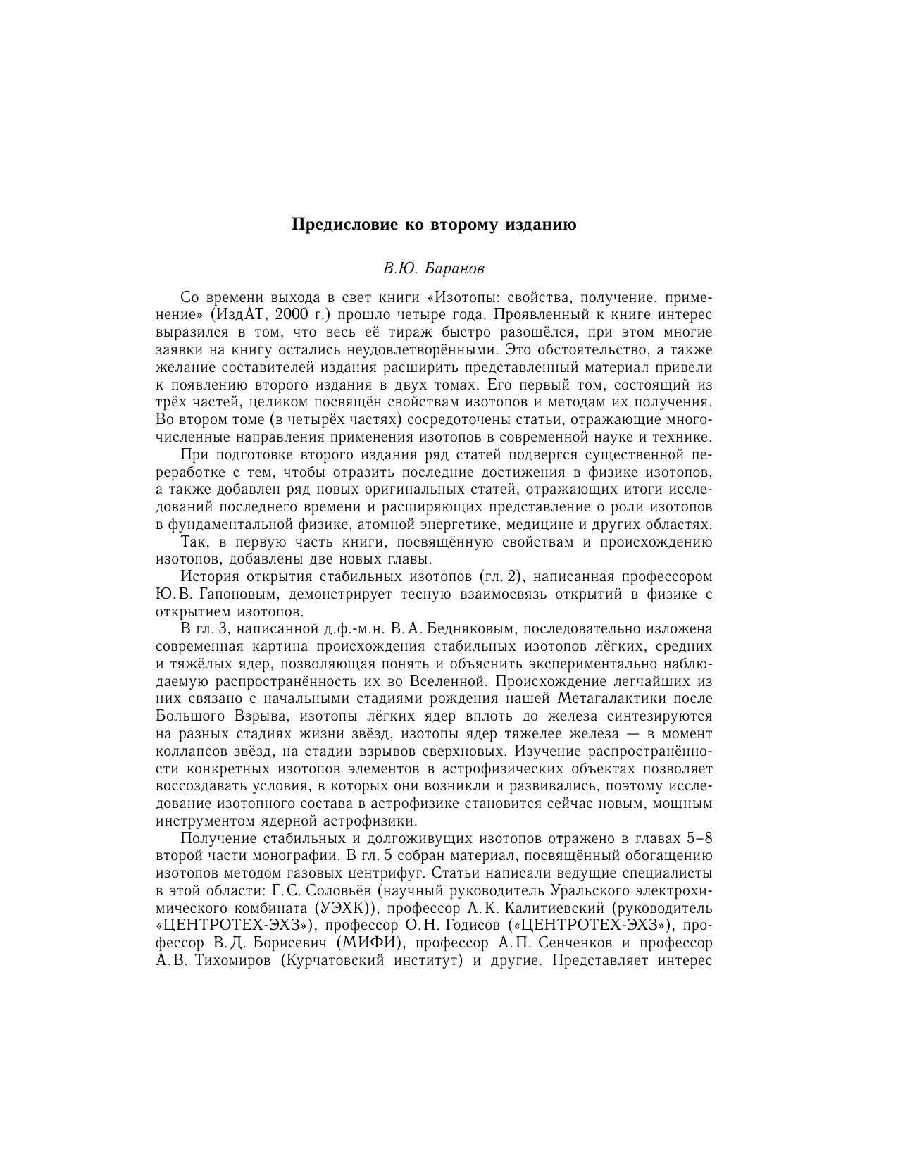 В данной книге собраны статьи по широкому кругу интенсивно развивающихся направлений науки и техники, которые связаны с получением и применением стабильных и радиоактивных изотопов. Разнообразные материалы объединены с целью создания книги справочно-энциклопедического характера. Главы написаны ведущими специалистами, которые непосредственно работают в областях науки и техники, связанных с изотопами. Сборник отражает последние достижения в соответствующих направлениях. Книга полезна учёным, инженерам, работающим с изотопами, для знакомства со смежными областями науки и технологии. Понимание перспектив методов получения и применения изотопов необходимо специалистам ряда других областей, где изотопы найдут применение в ближайшем будущем. Книга может служить справочным и учебным пособием для студентов и аспирантов, специализирующихся в ядерной физике, физике и химии изотопных эффектов, изотопных методах биологии и медицины