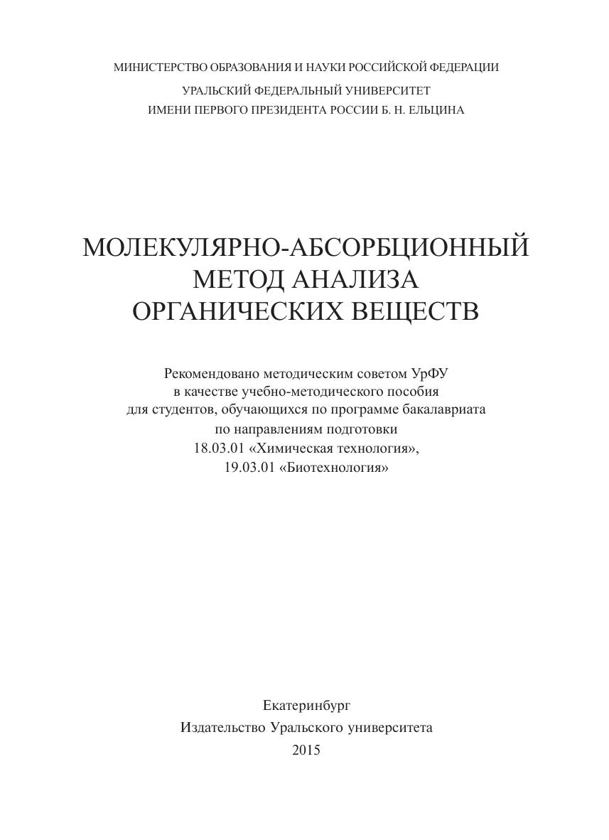 Молекулярно-абсорбционный метод анализа органических веществ: учеб.-метод. пособие