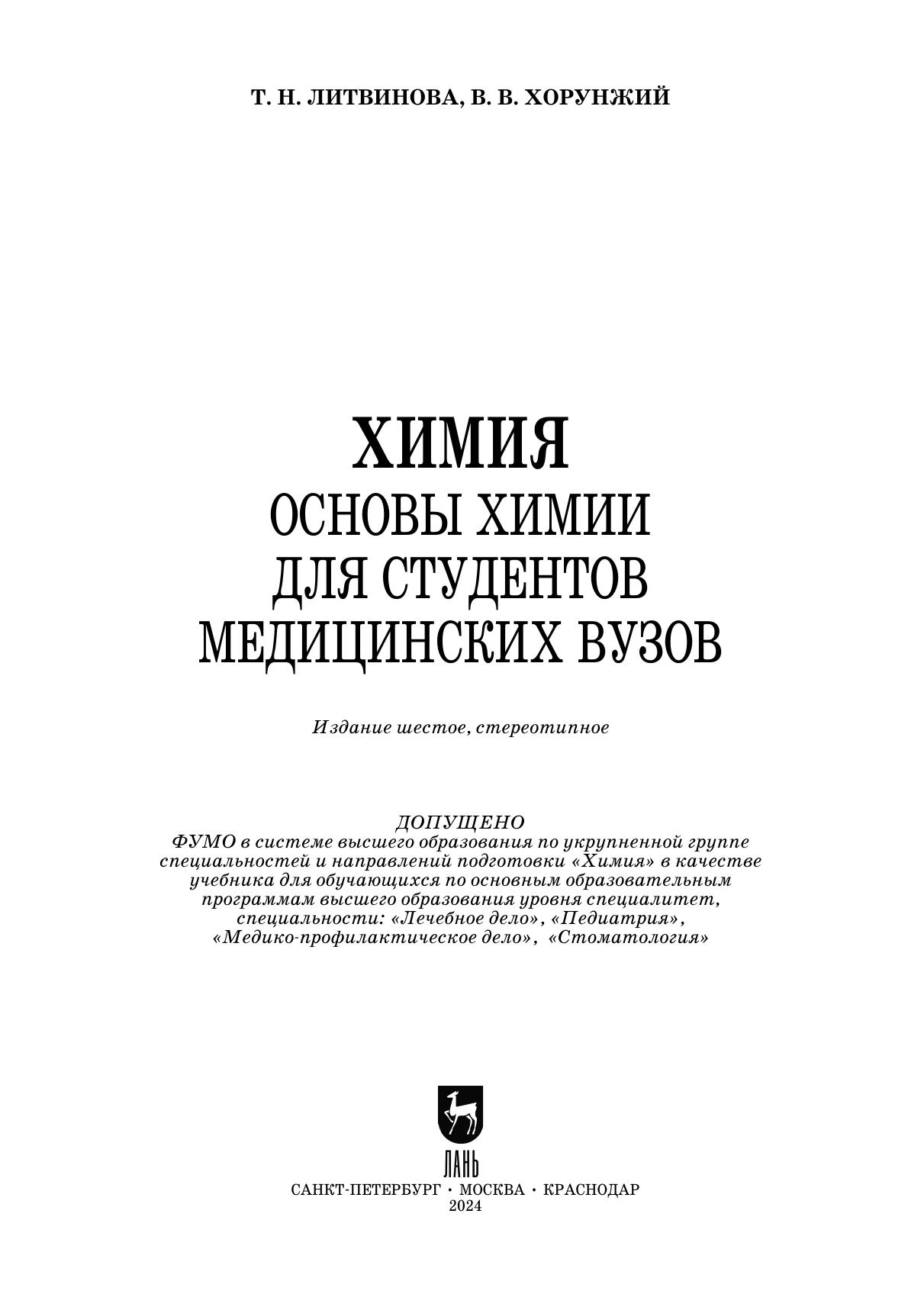 Основная цель учебника — формирование у студентов комплекса теоретических знаний: фундаментальных понятий, законов и закономерностей химии, а также умений применять теоретические знания для решения практических задач в будущей медицинской профессиональной деятельности.Учебник включает шесть модулей, содержание которых отобрано на принципах фундаментальности, интегративности, профессиональной направленности, рациональной минимизации. Включенный в модули учебный химический материал направлен на развитие понимания химической, физико-химической сущности процессов, протекающих в организме человека, показывает тесную связь химии с медициной, экологией, способствует формированию общекультурных, общепрофессиональных и профессиональных компетенций будущего врача. Каждый модуль учебника содержит иллюстрации, обучающие задания с решениями, вопросы и задания для самостоятельной работы студентов.Учебник предназначен для студентов медицинских вузов, обучающихся по специальностям «Педиатрия», «Стоматология», «Медико-профилактическое дело», и направлен на реализацию требований ФГОС ВО по данным специальностям.Учебник может быть использован студентами и преподавателями биологических немедицинских и нехимических вузов.