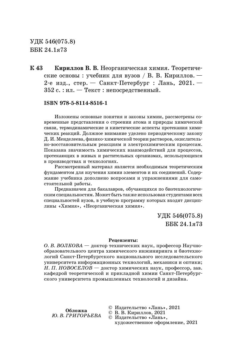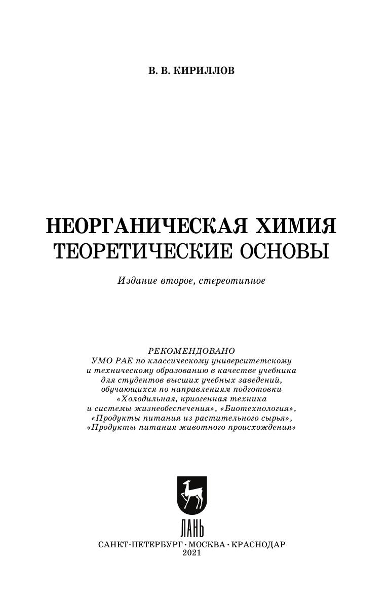 Предназначен для бакалавров, обучающихся по биотехнологическим специальностям. Может быть также использован студентами всех специальностей вузов, в учебную программу которых входят дисциплины «Химия», «Неорганическая химия».