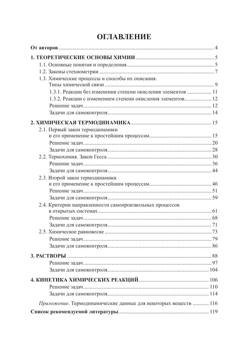 В учебно-методическом пособии рассмотрены основные законы и понятия общей химии, химической термодинамики и кинетики. Представлены примеры и задачи разного уровня сложности с подробным решением. Приведены упражнения для самостоятельной работы. Для студентов, изучающих общую химию, овладевающих навыками применения теоретических представлений и законов химии для решения практических задач.