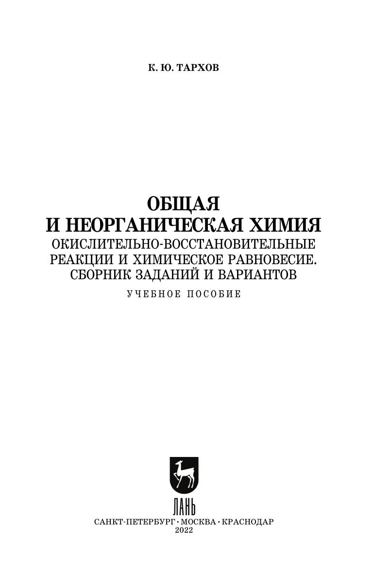 Общая и неорганическая химия. Окислительно-восстановительные реакции и химическое равновесие. Сборник заданий и вариантов